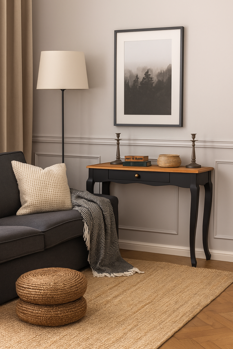 В гостиную можно добавить винтажную мебель, вроде сундука или небольшой консоли. Однако избегайте излишней перегруженности антикварными предметами. Хорошая гостиная должна быть практичной, а не только красивой.Например, вот что у нас получилось в одной из комнат. Маленькая консоль «Ари-Прованс» в стиле шебби шик стоит в углу комнаты. Рядом находится диван, на которым мы постелили кружевное покрывало. Этого оказалось достаточно, чтобы сделать практичную, но красивую гостиную.