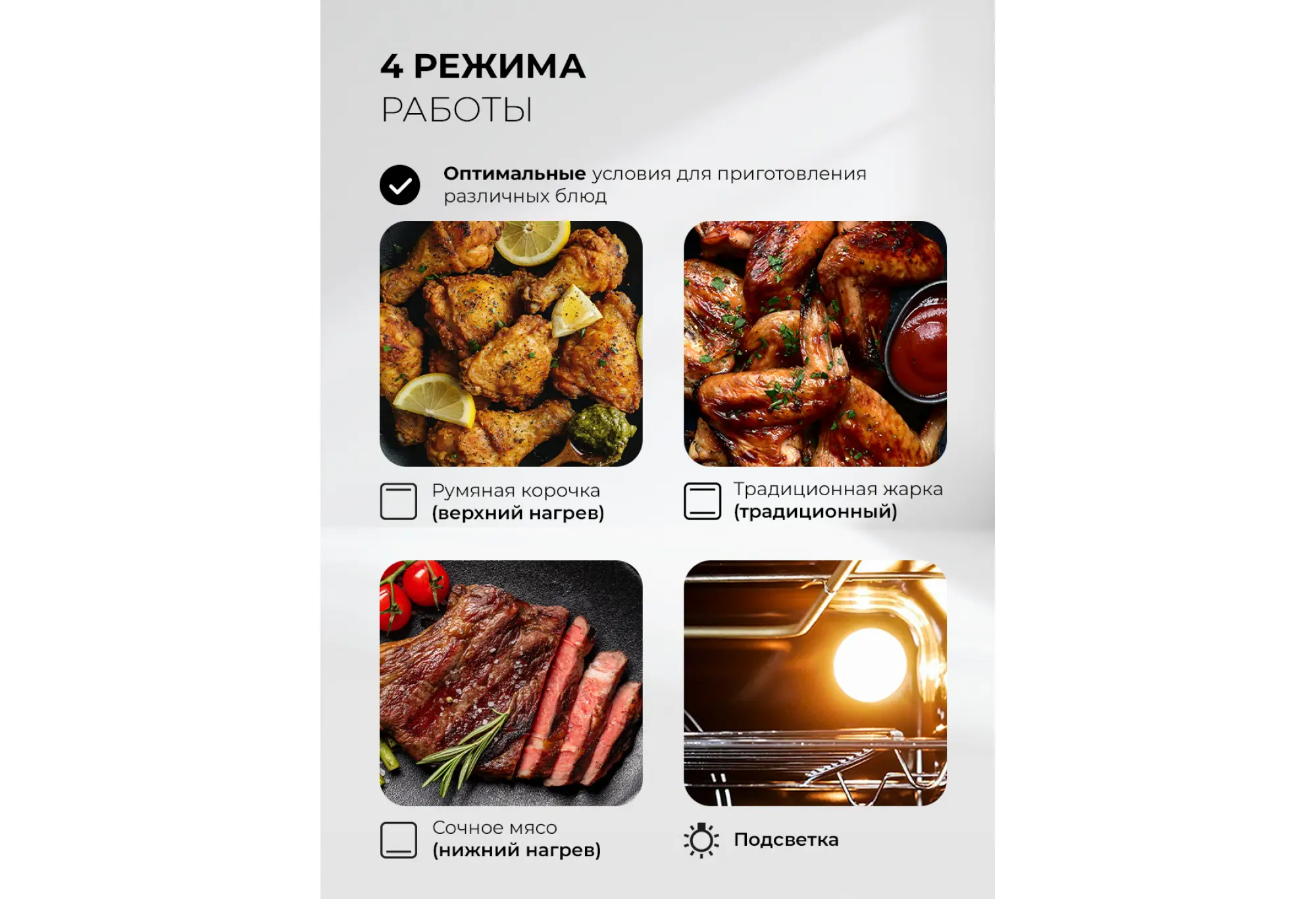 Встраиваемый электрический духовой шкаф LEX EDM 4540 GR предназначен для небольших кухонь, имеет нестандартный размер 45 см, но увеличенный внутренний объем 58 л. Это реализовано благодаря уникальной технологии Spase+, разработанной инженерами LEX. Духовой шкаф с механическим управлением выполнен в сером цвете с черными элементами управления и оснащена 4 режимами работы. Яркая подсветка, съемная дверца с системой SnapOff и двойное стекло, эмаль легкой очистки, хромированные направляющие делают духовку LEX EDM 4540 GR удобной в процессе эксплуатации и ухода.
