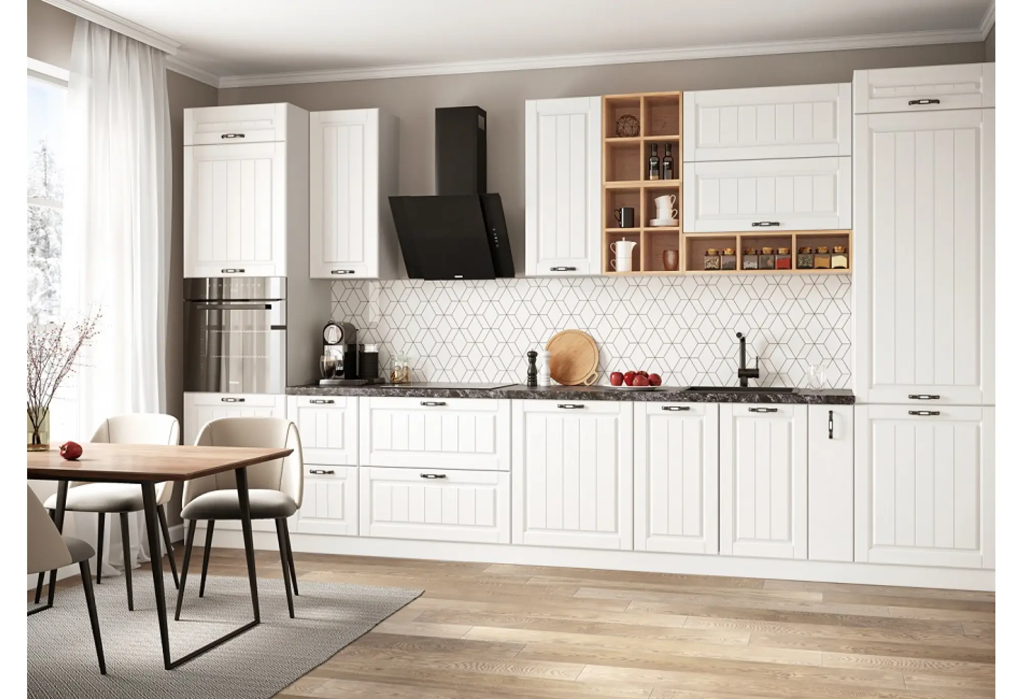 Модульная кухня "Империя" Белый эмалит МДФ Композиция № 1