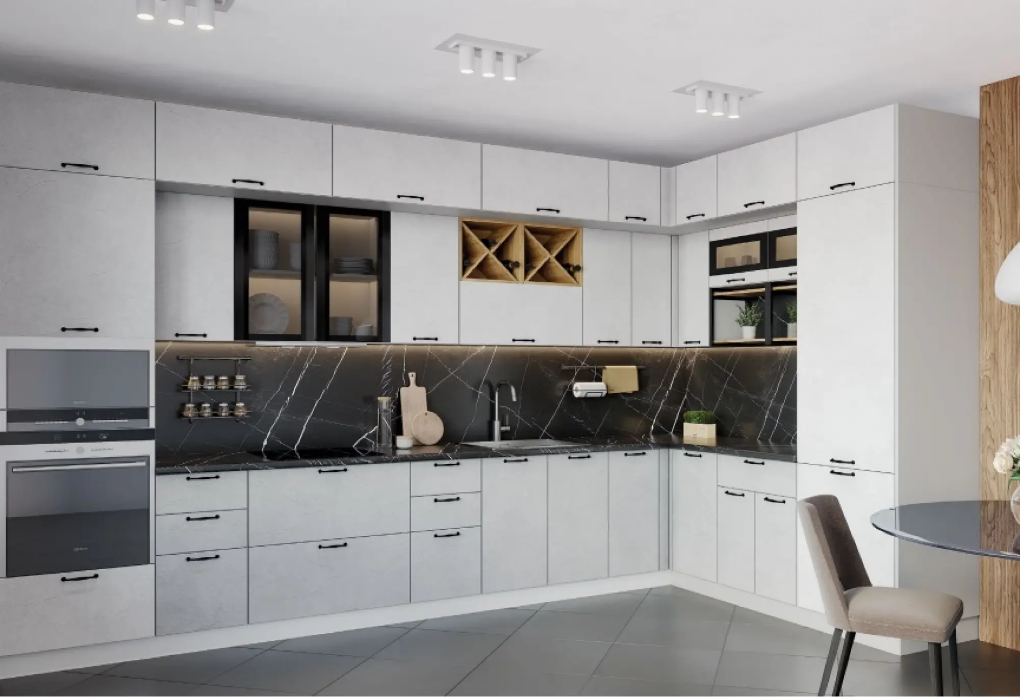- Модульная кухня "Лофт" Штукатурка белая / Штукатурка серая МДФ