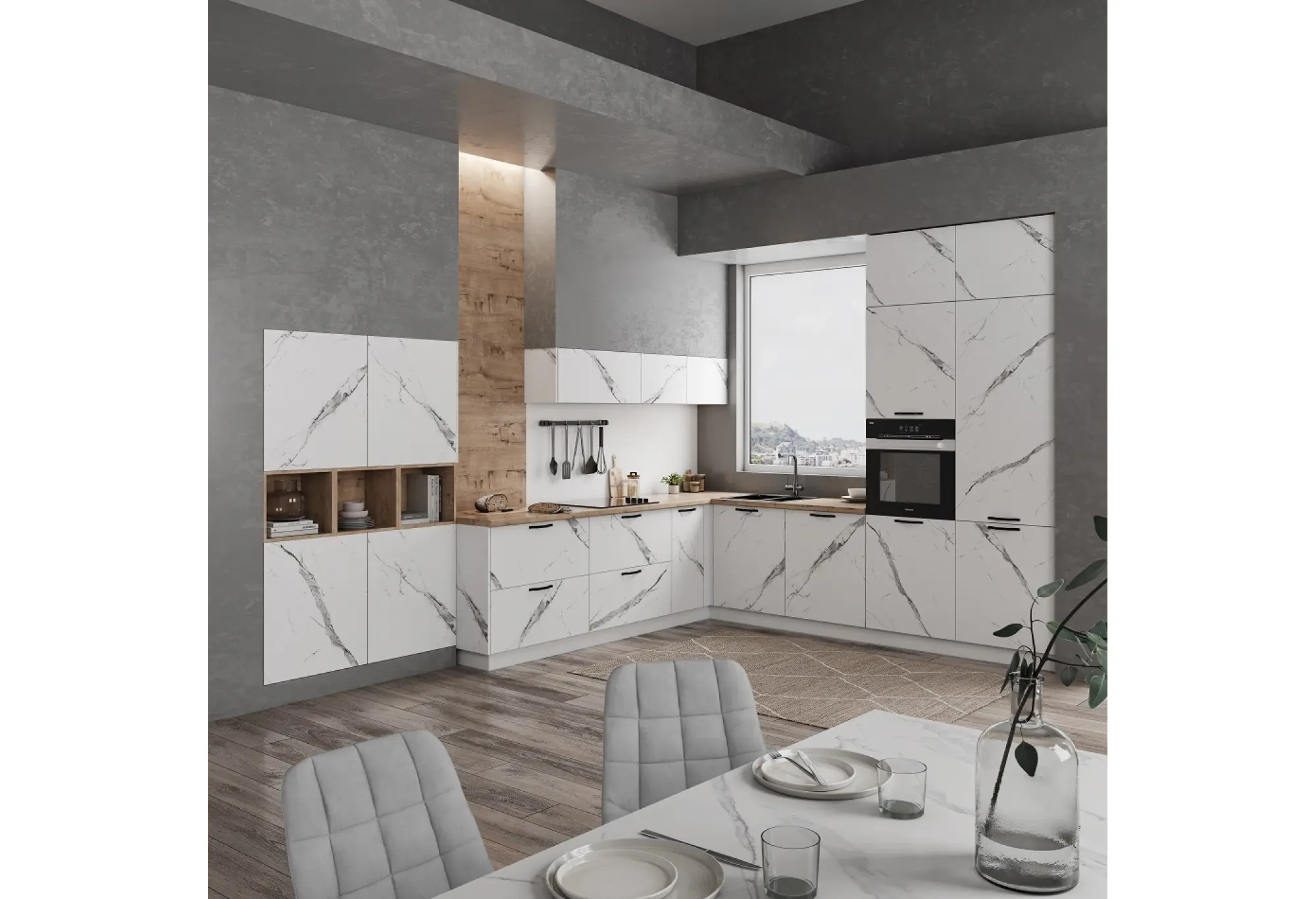 - Модульная кухня "Ройс" Мрамор Арктик МДФ