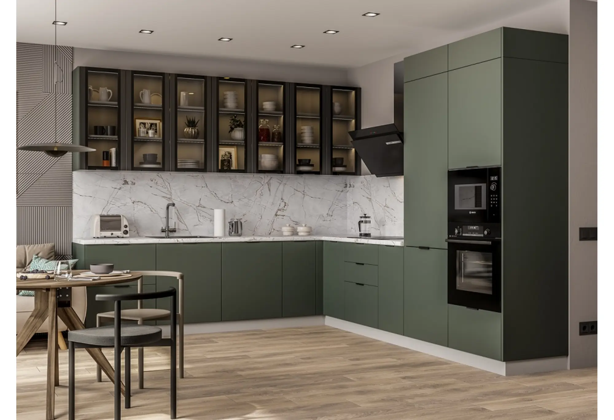Модульная кухня "Ройс" Оливково-зеленый МДФ Композиция № 2