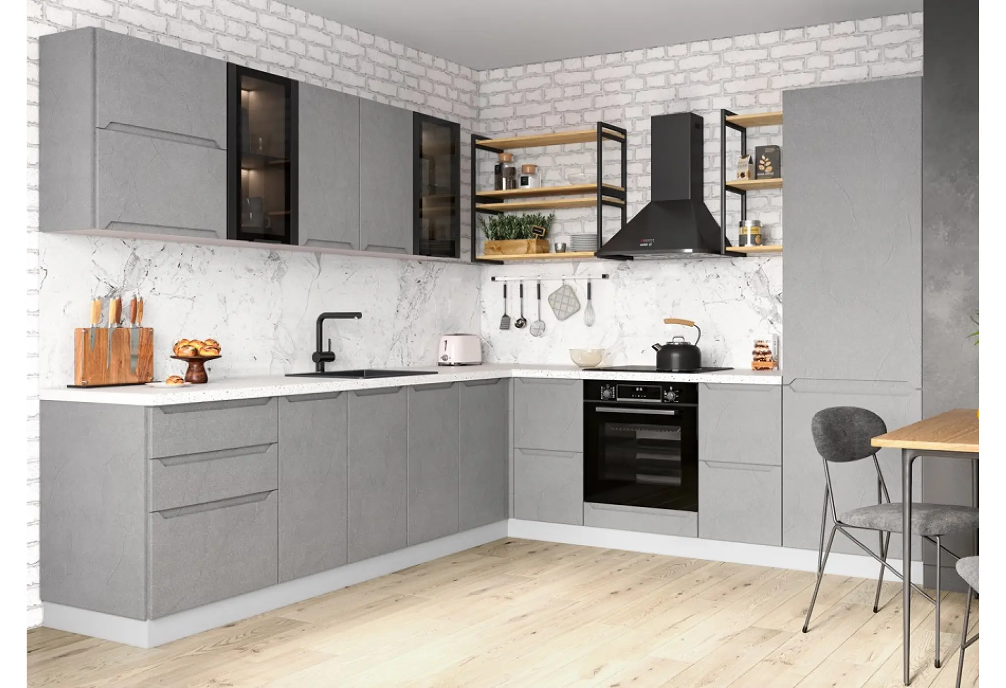Модульная кухня "Тренто" Штукатурка серая МДФ