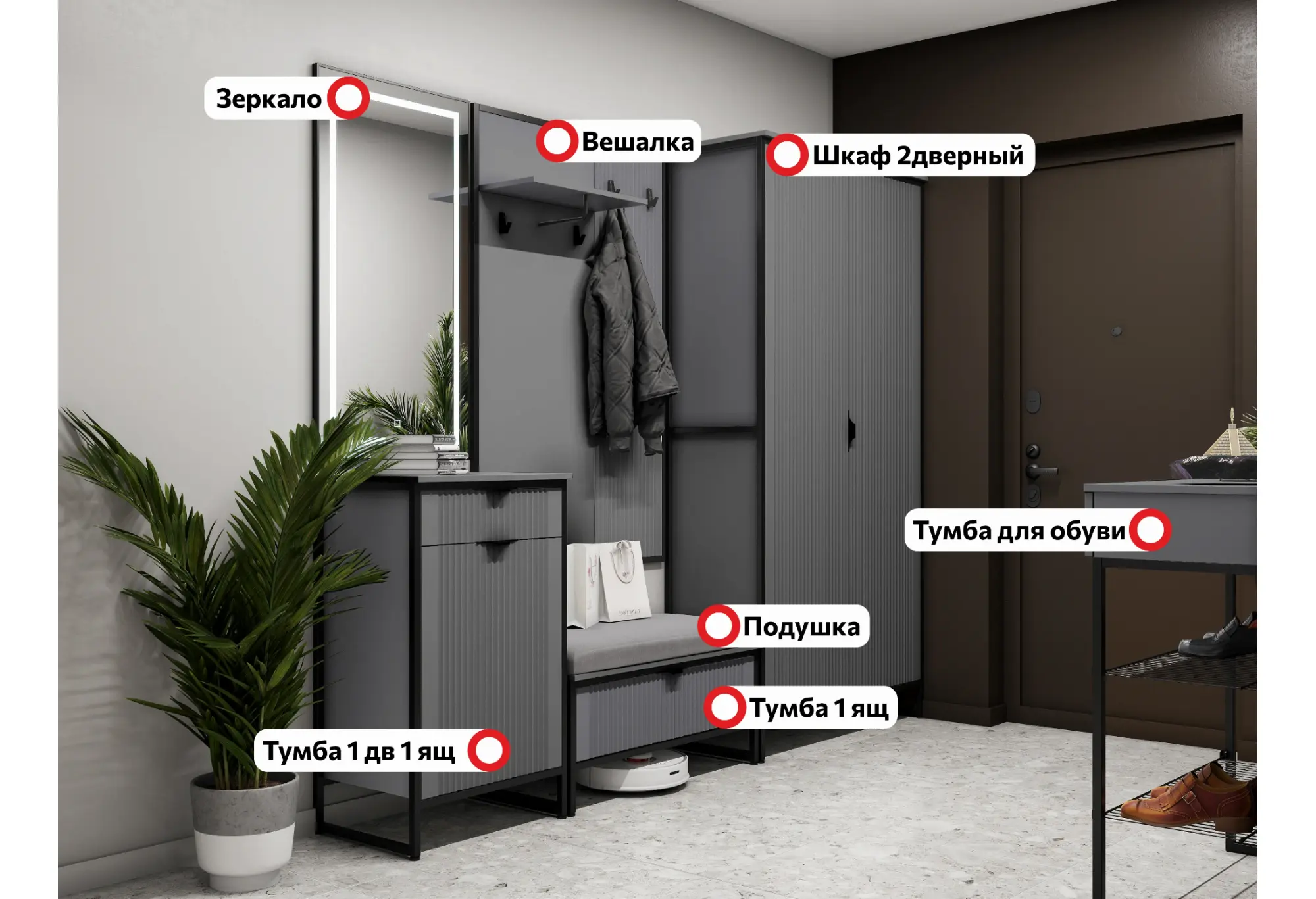 Прихожая "Нора" композиция #2 Графит