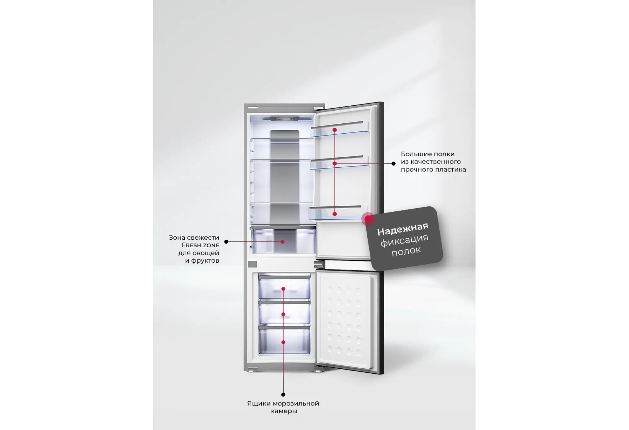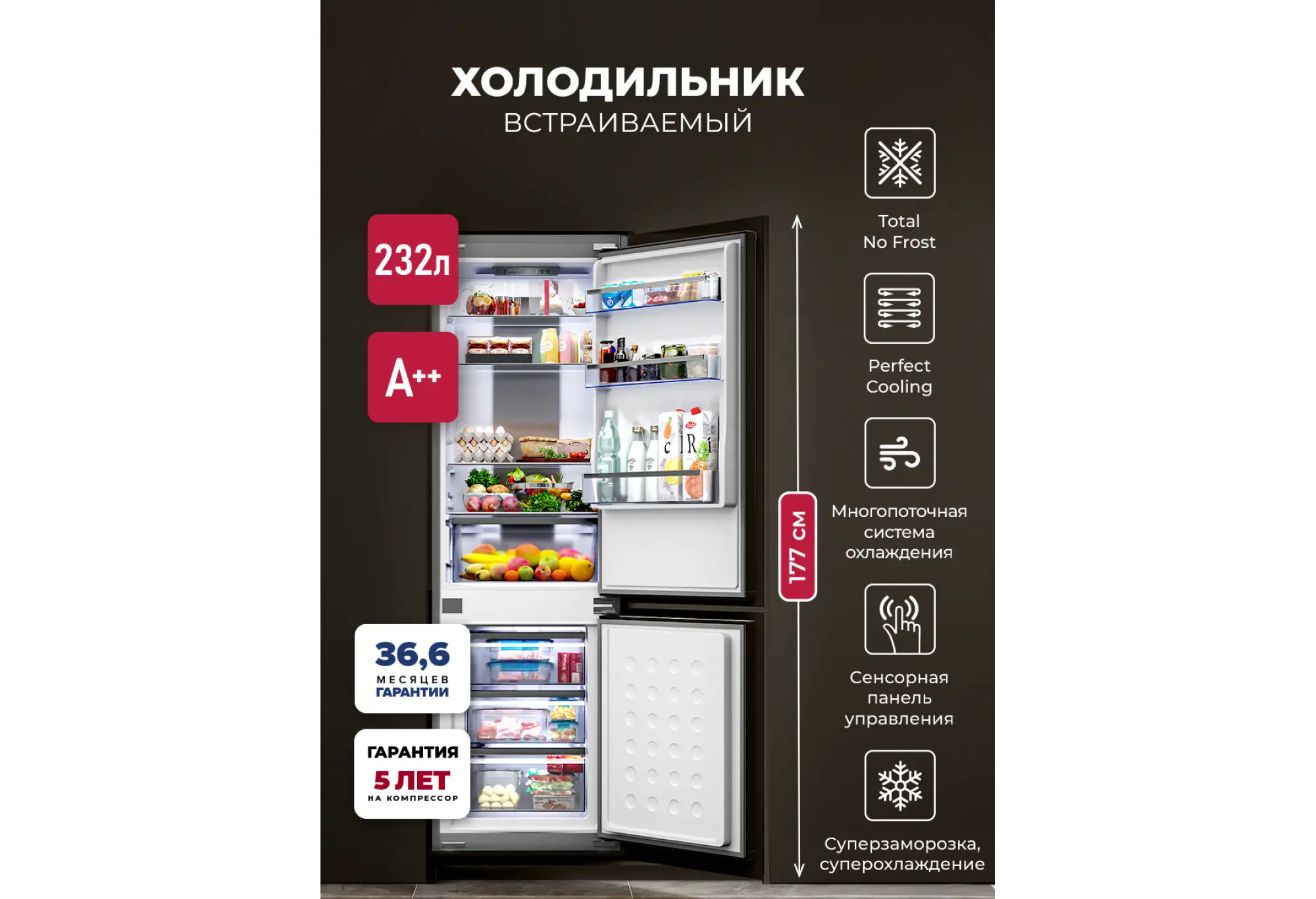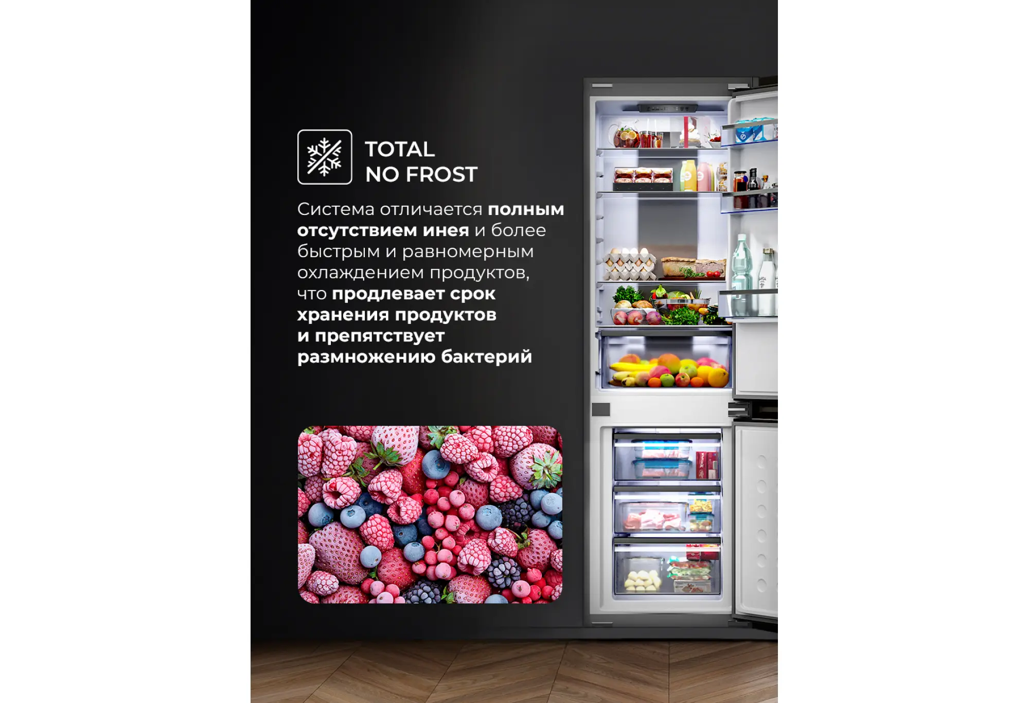 Двухкамерный холодильник LEX LBI177.3D имеет хороший функционал и в то же время очень прост в эксплуатации. Технология Total No Frost значительно упрощает обслуживание и помогает устанавливать оптимальную температуру и влажность. При большом объеме, мощной заморозке и яркой подсветке эта модель высотой 177 см обладает прекрасной энергоэффективностью и низким уровнем шума. Электронная панель управления удобна и долговечна, а режим сохранения температуры выручит при отключении электричества. Для вашего комфорта дверцу холодильника можно закрепить справа или слева; а функция “сигнал при открытой дверце” позаботится о том, чтобы она всегда была герметично закрыта. Модель оснащена ящиком, в котором можно отдельно настраивать уровень влажности, создавая идеальные условия для хранения разных видов овощей и фруктов.