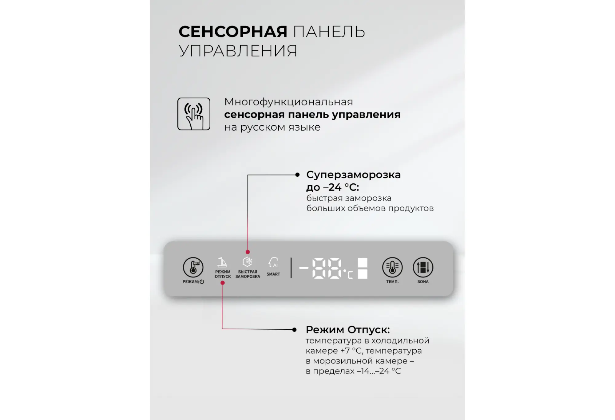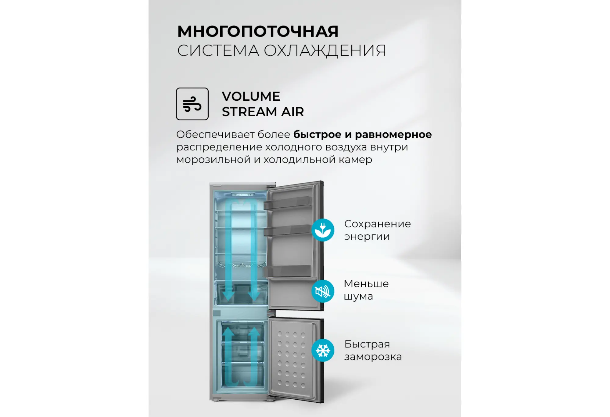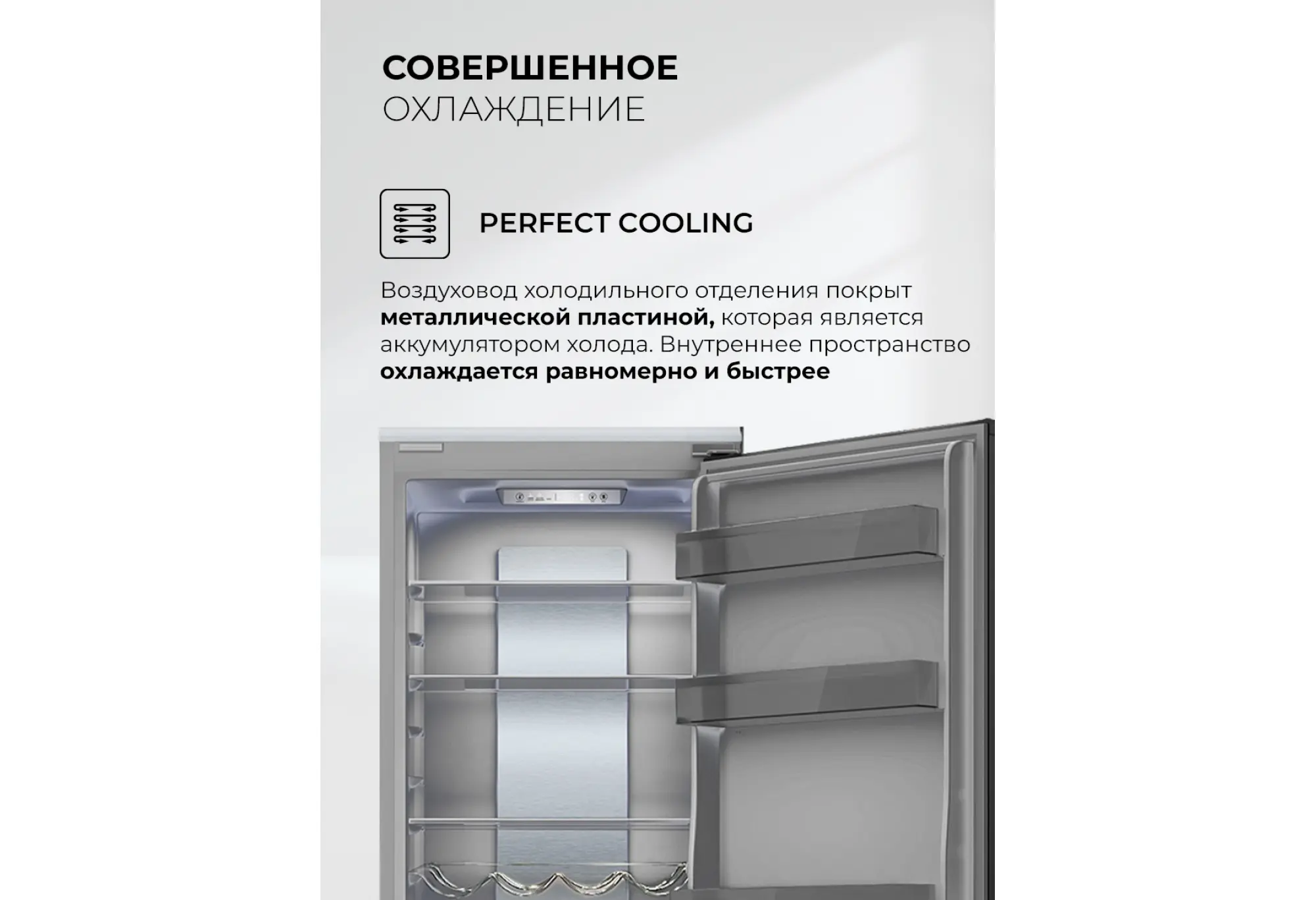 Встраиваемый двухкамерный холодильник LEX LBI177.3ID имеет хороший функционал и в то же время очень прост в эксплуатации. Внутренняя отделка холодильника и морзильника выполнена в серых тонах. Технология Total No Frost значительно упрощает обслуживание и помогает устанавливать оптимальную температуру и влажность. При большом объеме, мощной заморозке и яркой подсветке эта модель высотой 177 см обладает прекрасной энергоэффективностью и низким уровнем шума. Электронная панель управления удобна и долговечна, а режим сохранения температуры выручит при отключении электричества. Для вашего комфорта дверцу холодильника можно закрепить справа или слева; а функция “сигнал при открытой дверце” позаботится о том, чтобы она всегда была герметично закрыта. Модель оснащена ящиком, в котором можно отдельно настраивать уровень влажности, создавая идеальные условия для хранения разных видов овощей и фруктов. Холодильник LEX LBI177.3ID оснащен современным инверторным компрессором, который гарантирует эффективную и практически бесшумную работу. Он также обеспечивает низкий расход энергии и долго поддерживает температуру без электропитания.