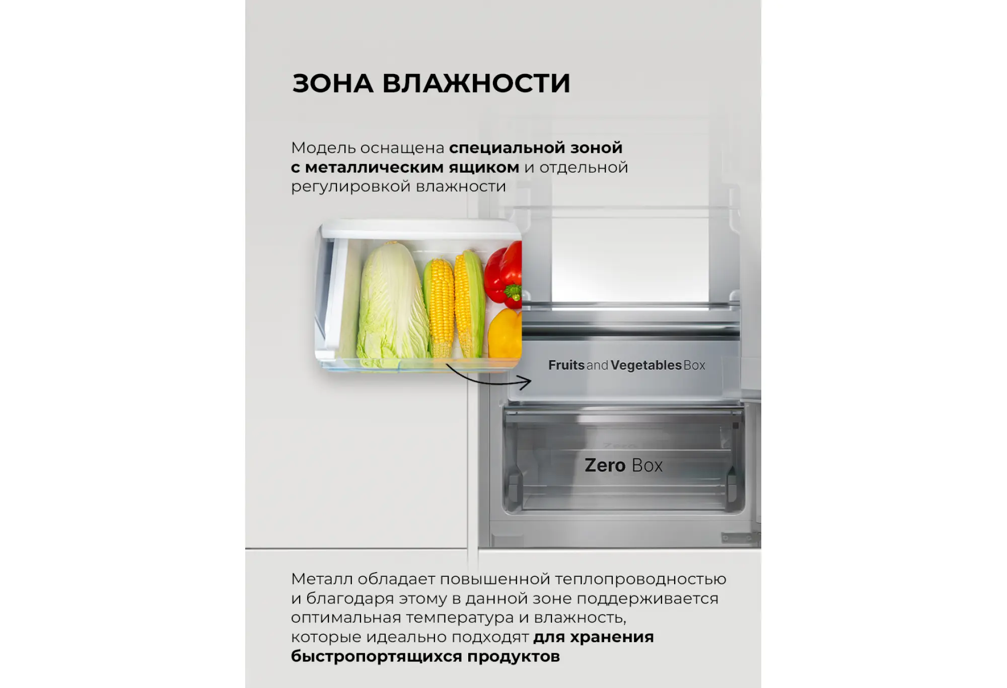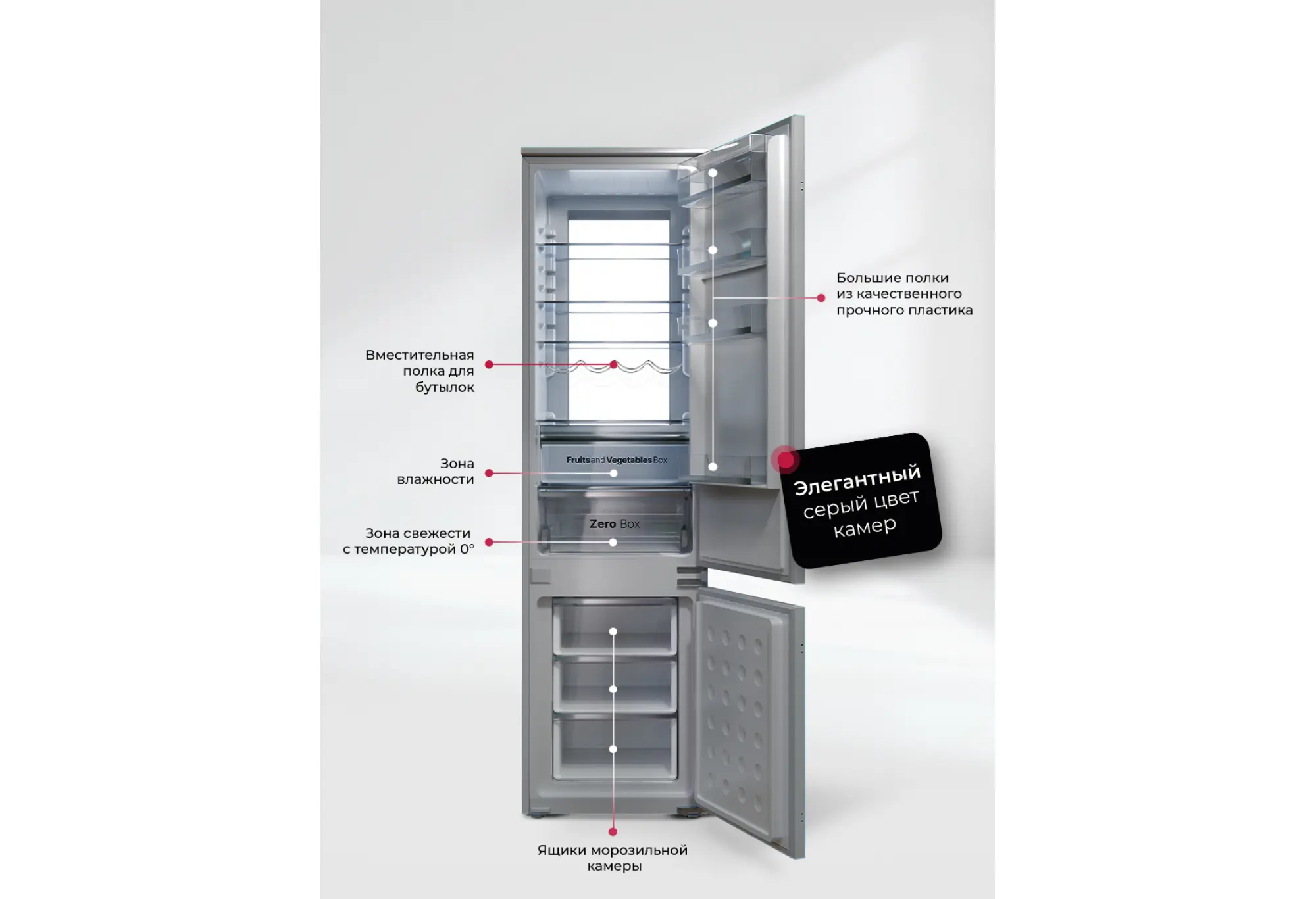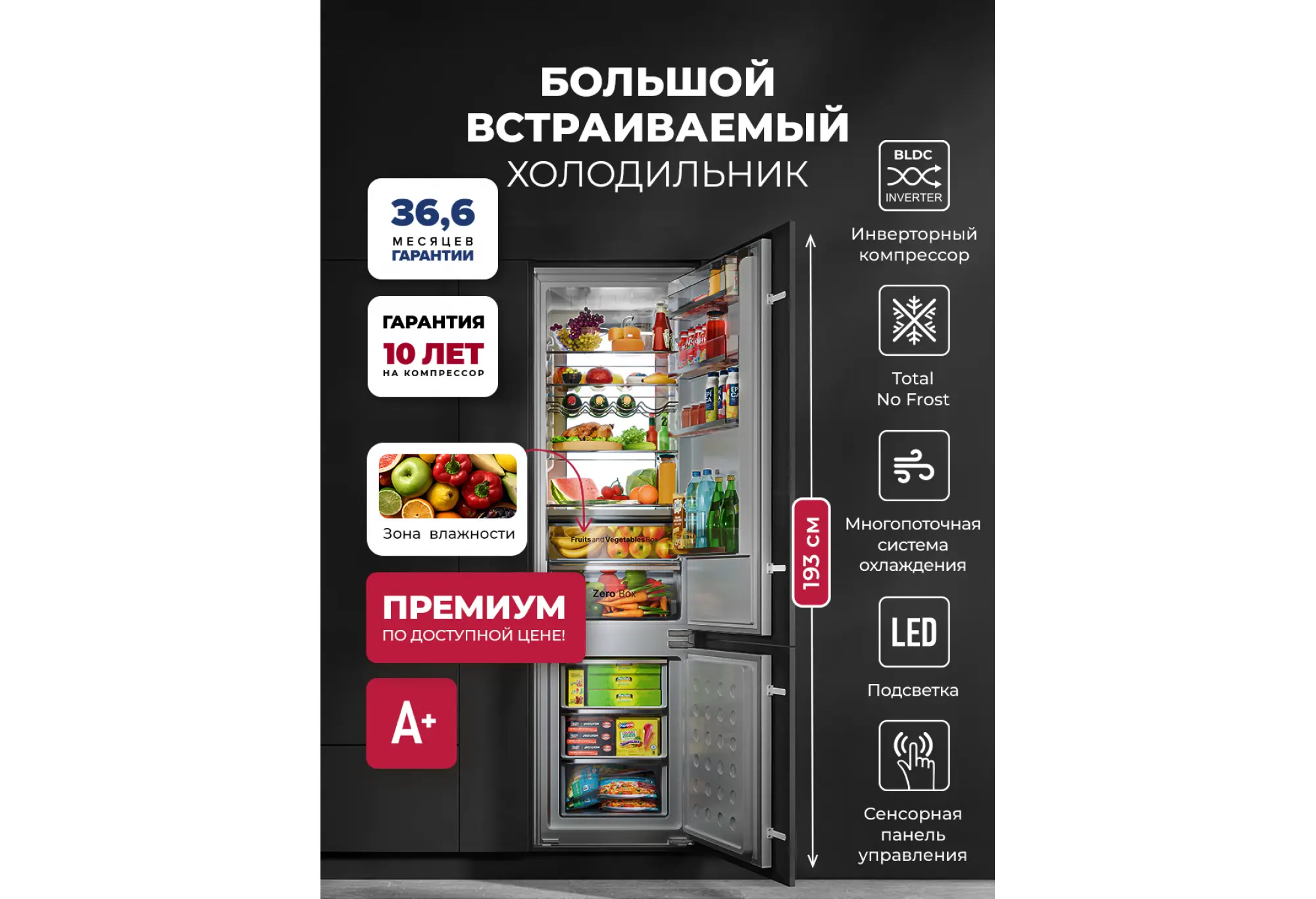 Двухкамерный холодильник LEX LBI 193.3ID Grey оснащен современным инверторным компрессором, который гарантирует эффективную и практически бесшумную работу. Он также обеспечивает низкий расход энергии и долго поддерживает температуру без электропитания. Он оснащен технологией No Frost благодаря чему уход за холодильником становится гораздо легче. При большом объеме, мощной заморозке и яркой подсветке эта модель высотой 193 см обладает прекрасной энергоэффективностью и низким уровнем шума. Электронная панель управления удобна и долговечна, а режим сохранения температуры выручит при отключении электричества. Для вашего комфорта дверцу холодильника можно закрепить справа или слева; специальный сенсор позаботится о том, чтобы она всегда была герметично закрыта. Модель оснащена ящиком, в котором можно отдельно настраивать уровень влажности, создавая идеальные условия для хранения разных видов овощей и фруктов.