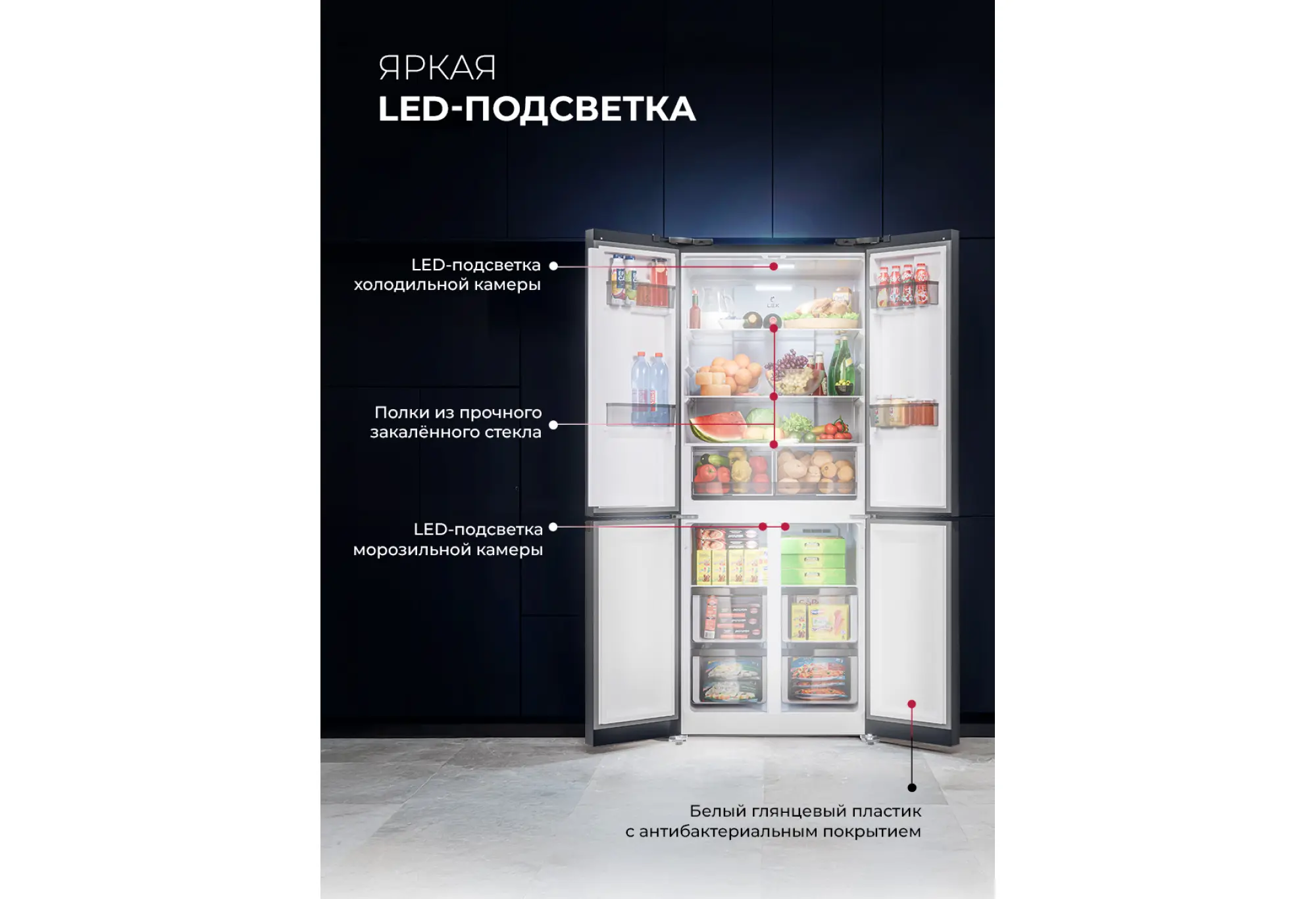 - Яркая LED‑подсветка и продуманная организация внутреннего пространства