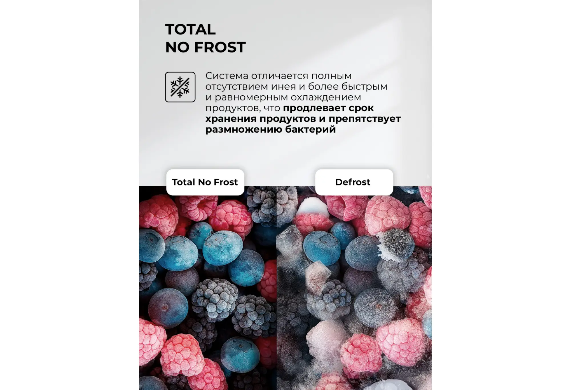 - Система Total No Frost в обеих камерах