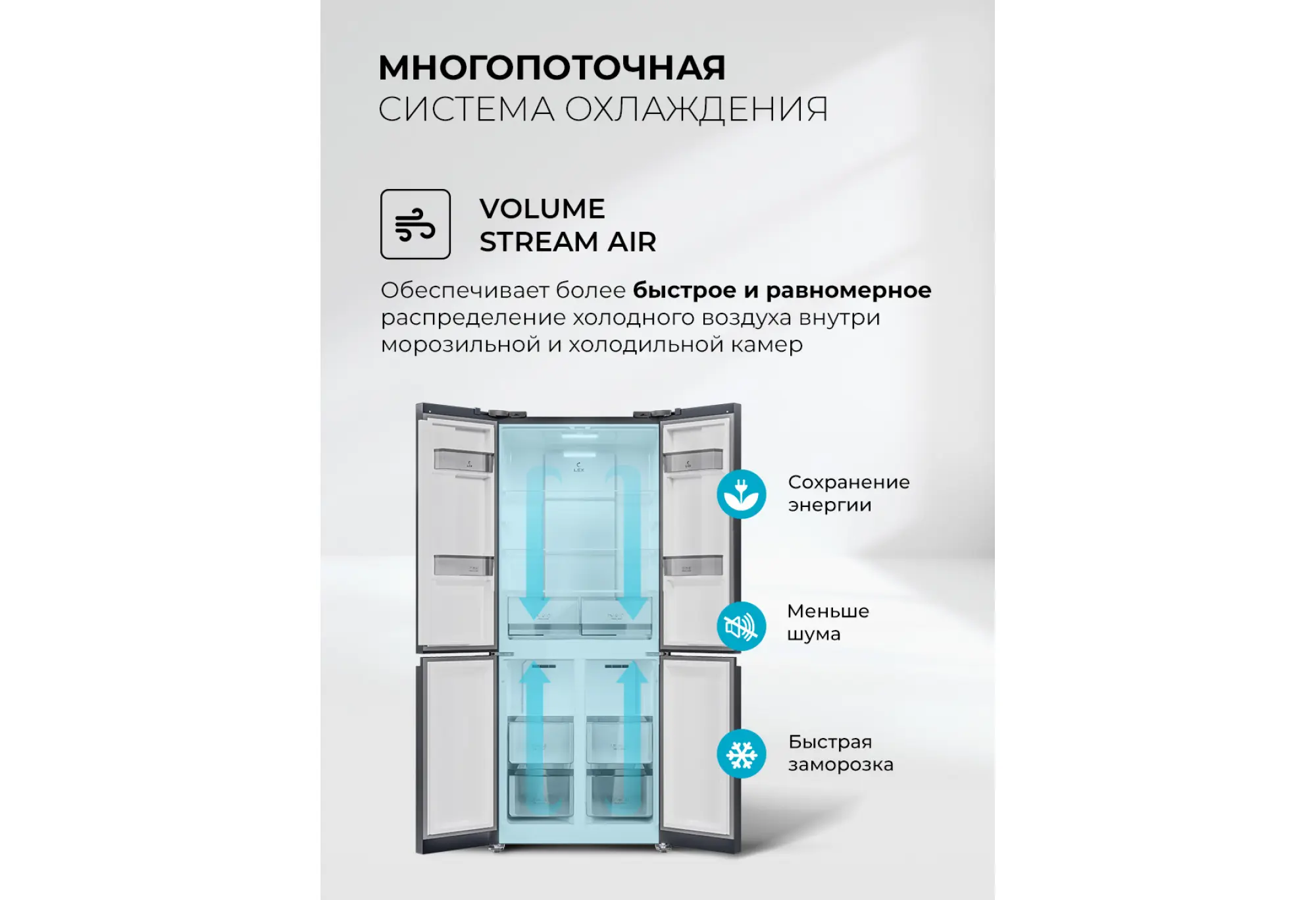 - Равномерное распределение холода системой Volume Stream Air