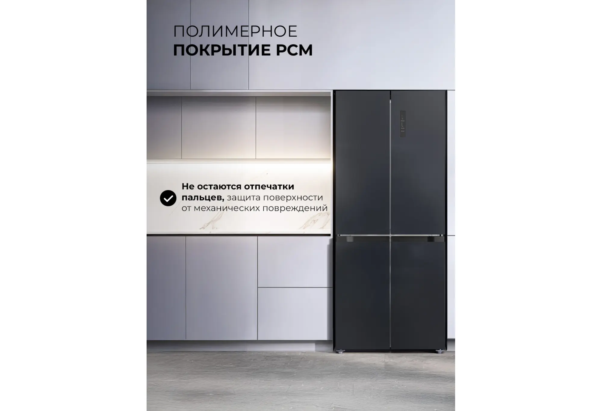 Темно‑серый металлический корпус придаёт холодильнику строгий, современный вид. Нейтральный цвет гармонично вписывается в большинство кухонных интерьеров, от минимализма до строгой классики.