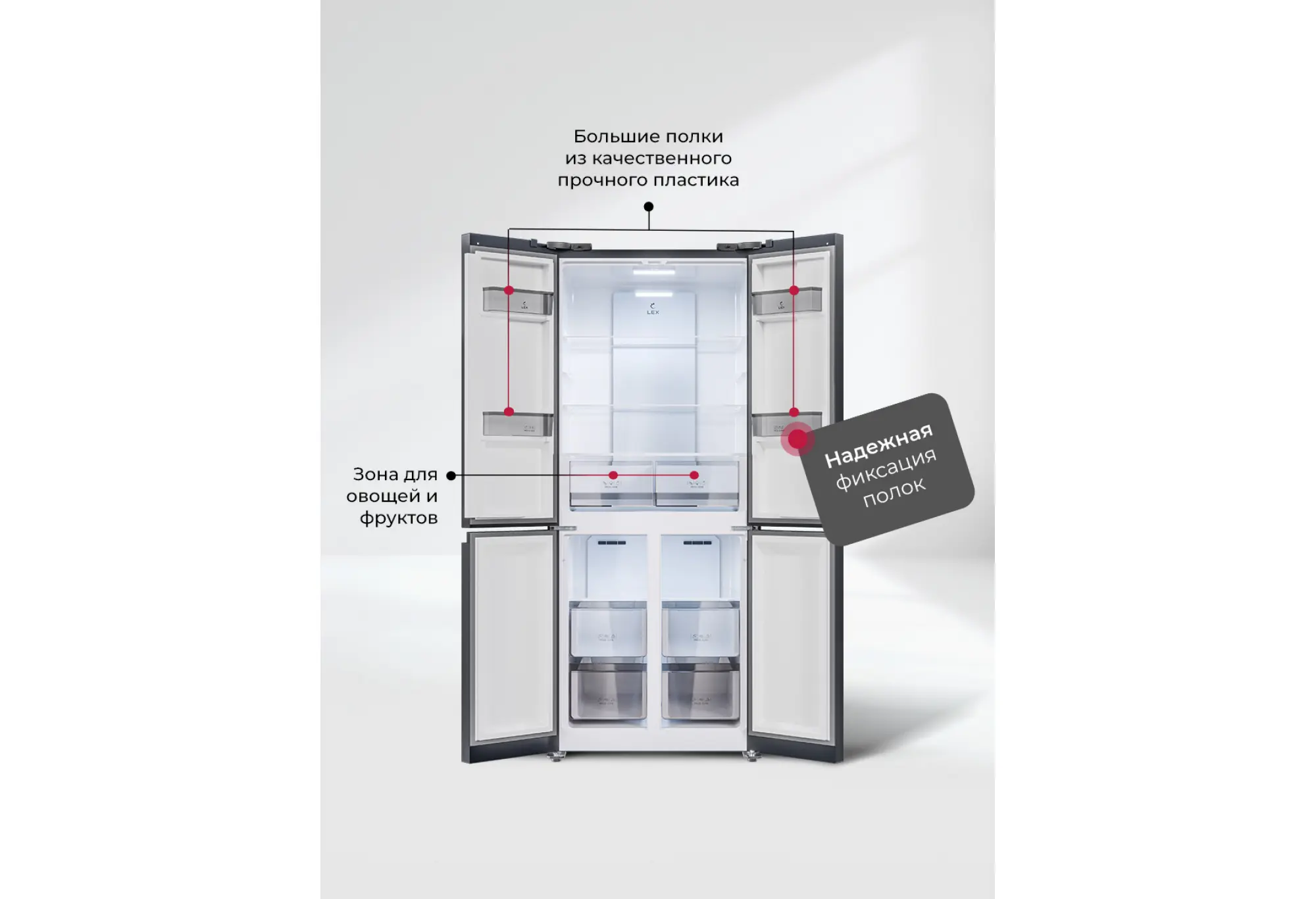 Этот холодильник создаёт комфортный запас по объёму, функциям и надёжности, чтобы вы могли планировать покупки спокойно и хранить продукты так, как удобно именно вам.