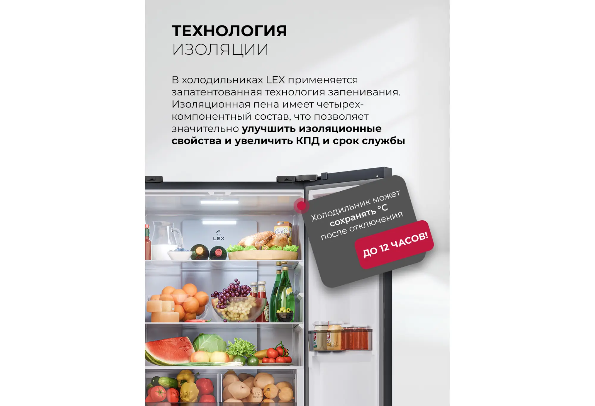 - Сохранение температуры до 12 часов при отключении электричества