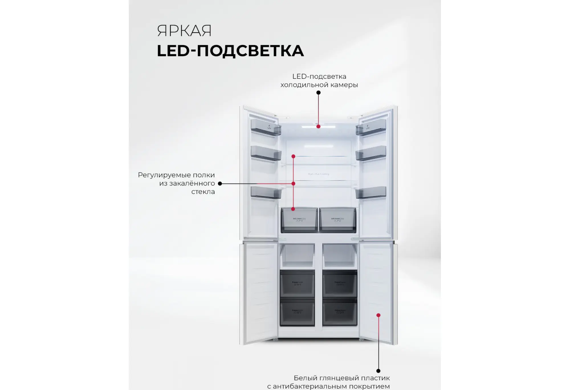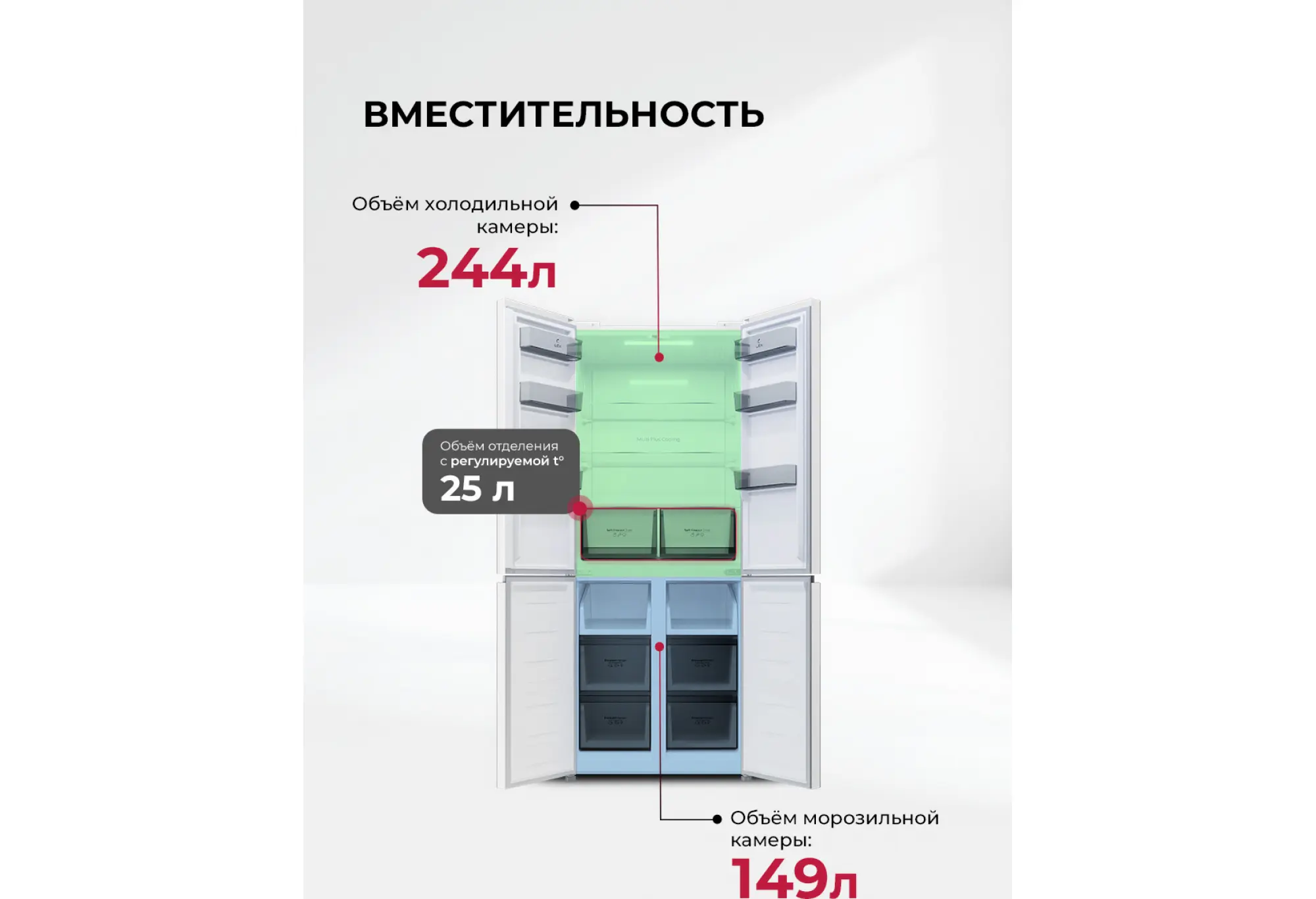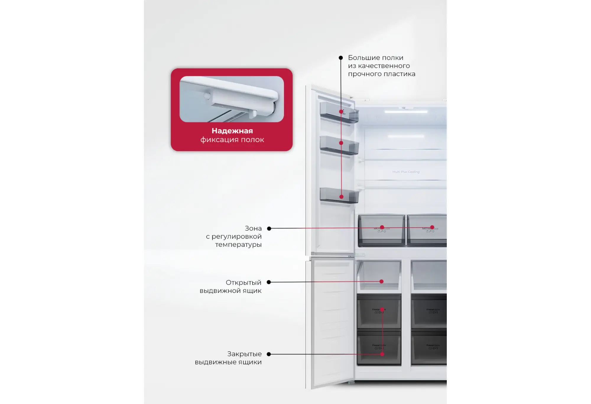 Холодильник Cross Door с инверторным компрессором будет радовать вас многие годы. Модель со стеклянными дверьми станет ключевым элементом дизайна вашей кухни. Вентиляция у холодильника находится в нижней части, поэтому его можно интегрировать в любой шкаф или стену.Разделение на 3 камеры с впечатляющим объемом, независимыми контурами охлаждения и системой Total No Frost делает использование холодильника и уход за ним очень комфортными.Зоны с независимой настройкой температуры и влажности помогут сохранить овощи и фрукты свежими на длительное время.Электронное управление позволяет легко регулировать параметры в каждой камере. LED-лампы создают яркое и равномерное освещение, чтобы вы легко могли найти нужный продукт.Холодильник отличается очень низким уровнем шума, поэтому станет идеальным решением даже для европланировок. Класс энергопотребления А+++ и возможность сохранения температуры почти на сутки при отключении электроэнергии делают модель не только эффективным и эффектным, но и надежным решением для вашего дома.