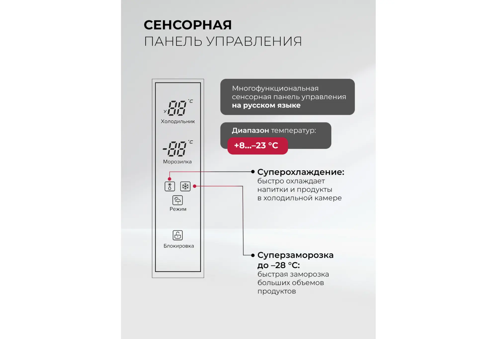 - Электронное управление и функции суперзаморозки/суперохлаждения