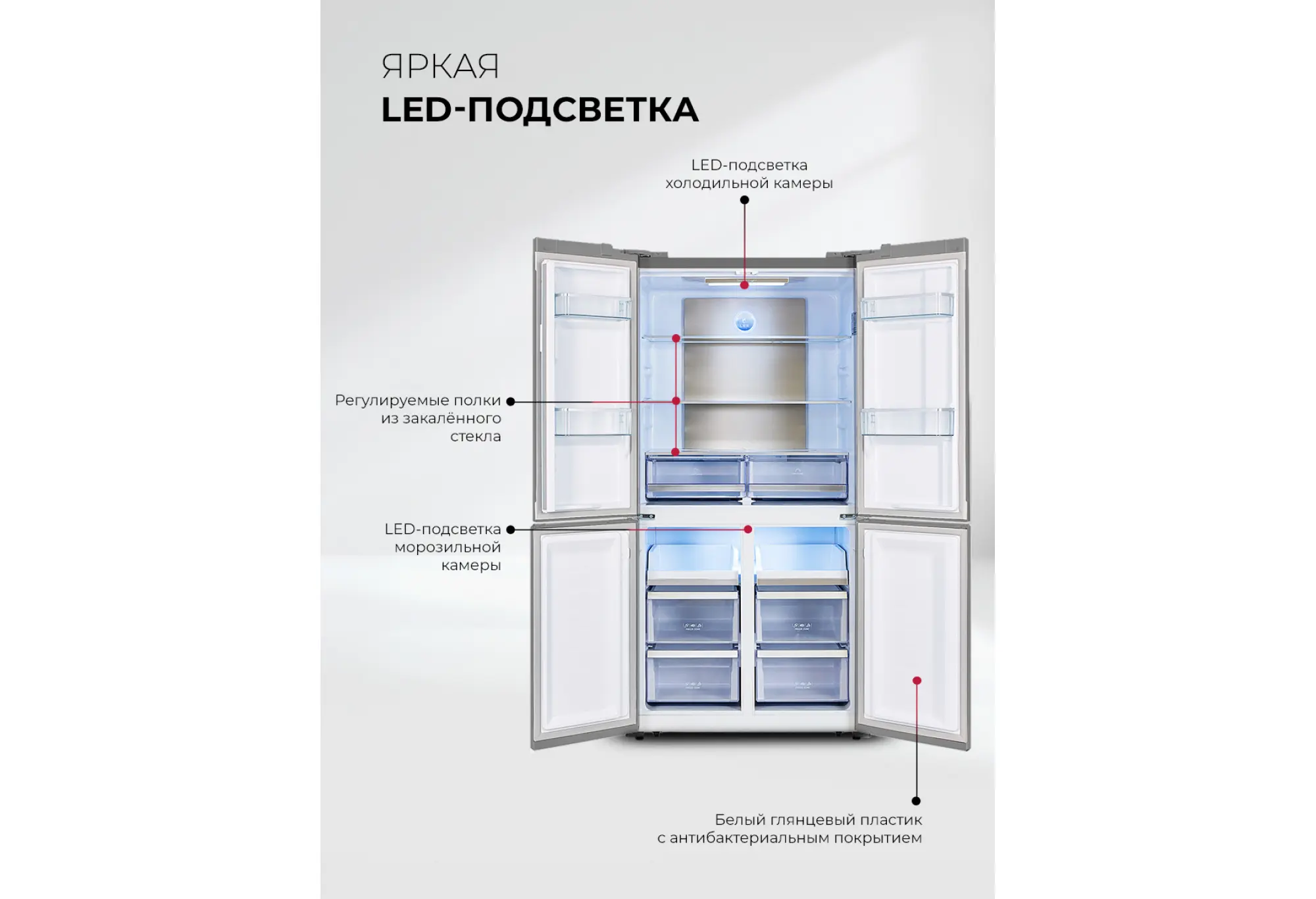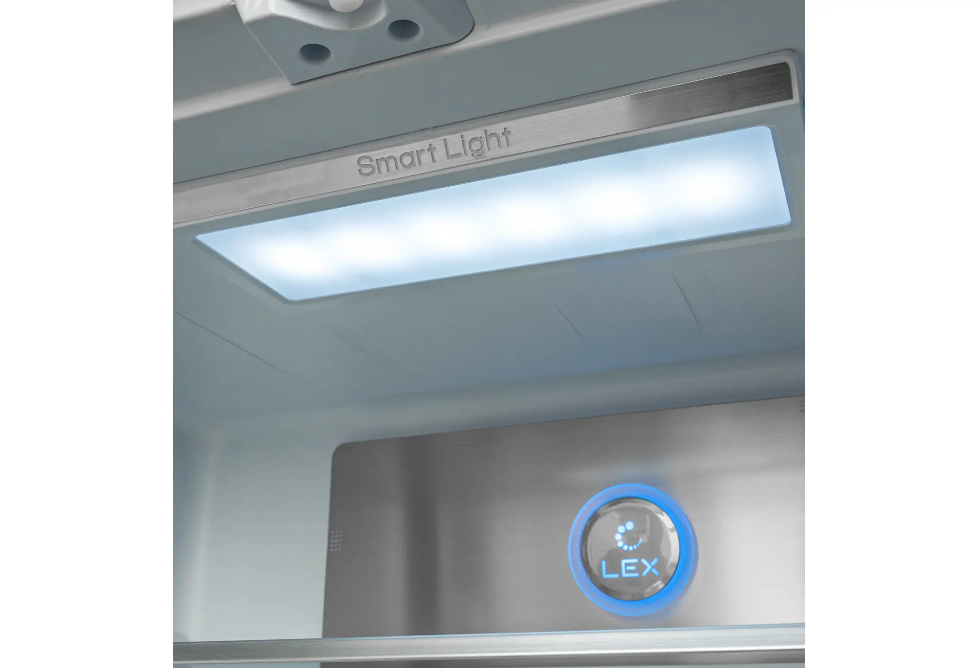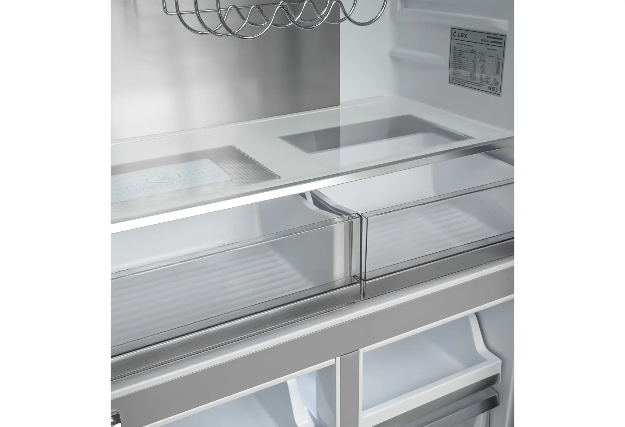 Холодильник LEX LCD 505 станет отличным выбором для большой семьи и стильной кухни. Объем 505 литров позволит разместить все, чего вам захочется. Охлаждение и заморозка происходят по системе No Frost, без образования инея, поэтому вам не нужно тратить время на размораживание. Современный инверторный компрессор работает эффективнее, тише и быстрее обычного, а технология LEX Volume Stream Air обеспечивает более равномерное охлаждение. Задняя стенка холодильной камеры покрыта металлом с высокой теплопроводностью, благодаря чему система охлаждения быстрее выравнивает колебания температуры. Модель типа CROSS DOOR имеет верхнее холодильное и два независимых нижних морозильных отделения. Такая конструкция помогает поддерживать подходящие условия хранения внутри каждой камеры, даже если вы часто открываете дверцы. Диапазон температур: +8…–23 °C, но с функцией суперзаморозки можно быстро снизить температуру в морозильном отделении до –28 °С. Похожий режим есть и в холодильной камере. Холодильник оснащен функцией сохранения температуры в течение 12 часов, которая выручит при отключении электричества. Благодаря понятной электронной панели управления и яркой подсветке вы всегда сможете точно контролировать условия хранения. А когда такой возможности нет, будет достаточно одного нажатия, чтобы автоматически установить в каждом отделении температуры, которые позволяют экономить энергию, но не влияют на качество хранения продуктов. Модель представлена в восьми вариантах оформления, которые отличаются цветом, текстурой и материалом отделки.