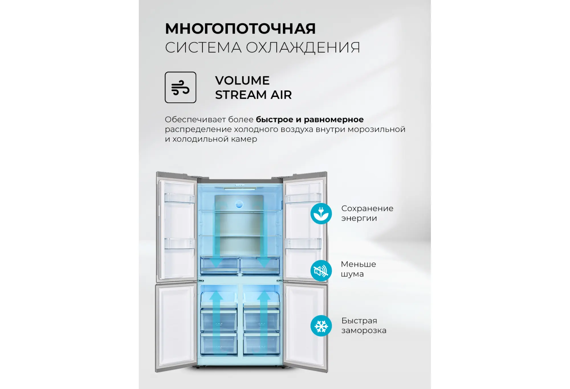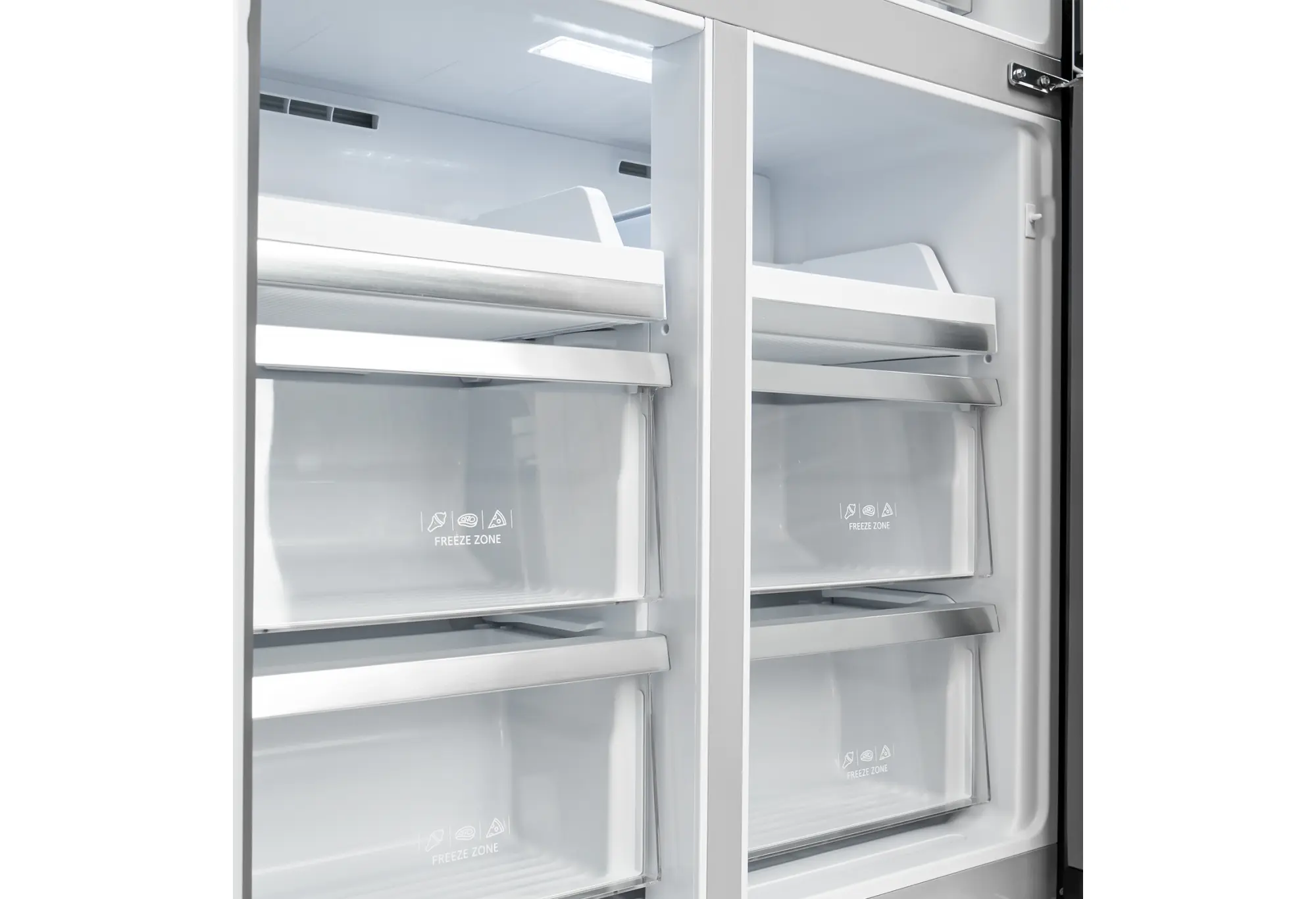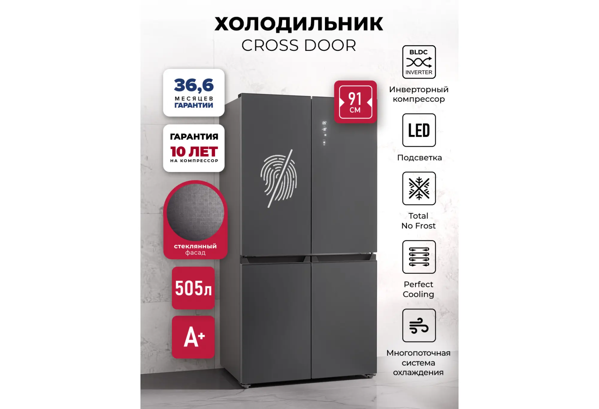 Холодильник LEX LCD 505 станет отличным выбором для большой семьи и стильной кухни. Объем 505 литров позволит разместить все, чего вам захочется. Охлаждение и заморозка происходят по системе No Frost, без образования инея, поэтому вам не нужно тратить время на размораживание. Современный инверторный компрессор работает эффективнее, тише и быстрее обычного, а технология LEX Volume Stream Air обеспечивает более равномерное охлаждение. Задняя стенка холодильной камеры покрыта металлом с высокой теплопроводностью, благодаря чему система охлаждения быстрее выравнивает колебания температуры. Модель типа CROSS DOOR имеет верхнее холодильное и два независимых нижних морозильных отделения. Такая конструкция помогает поддерживать подходящие условия хранения внутри каждой камеры, даже если вы часто открываете дверцы. Диапазон температур: +8…–23 °C, но с функцией суперзаморозки можно быстро снизить температуру в морозильном отделении до –28 °С. Похожий режим есть и в холодильной камере. Холодильник оснащен функцией сохранения температуры в течение 12 часов, которая выручит при отключении электричества. Благодаря понятной электронной панели управления и яркой подсветке вы всегда сможете точно контролировать условия хранения. А когда такой возможности нет, будет достаточно одного нажатия, чтобы автоматически установить в каждом отделении температуры, которые позволяют экономить энергию, но не влияют на качество хранения продуктов. Модель представлена в восьми вариантах оформления, которые отличаются цветом, текстурой и материалом отделки.