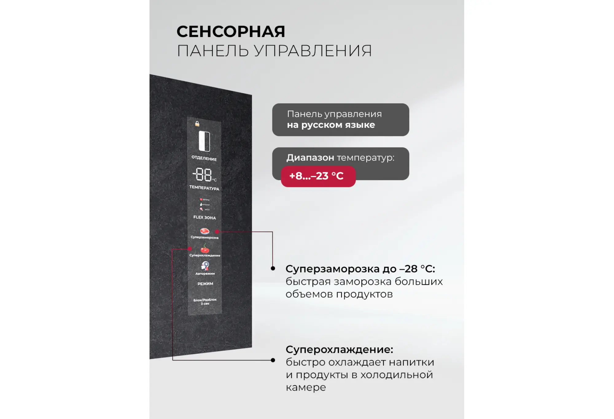 - Режимы суперзаморозки и суперохлаждения