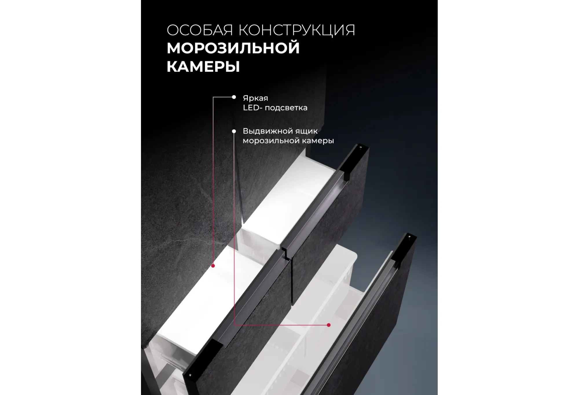 - Удобная внутренняя организация - выдвижные ящики в холодильной и морозильной камерах