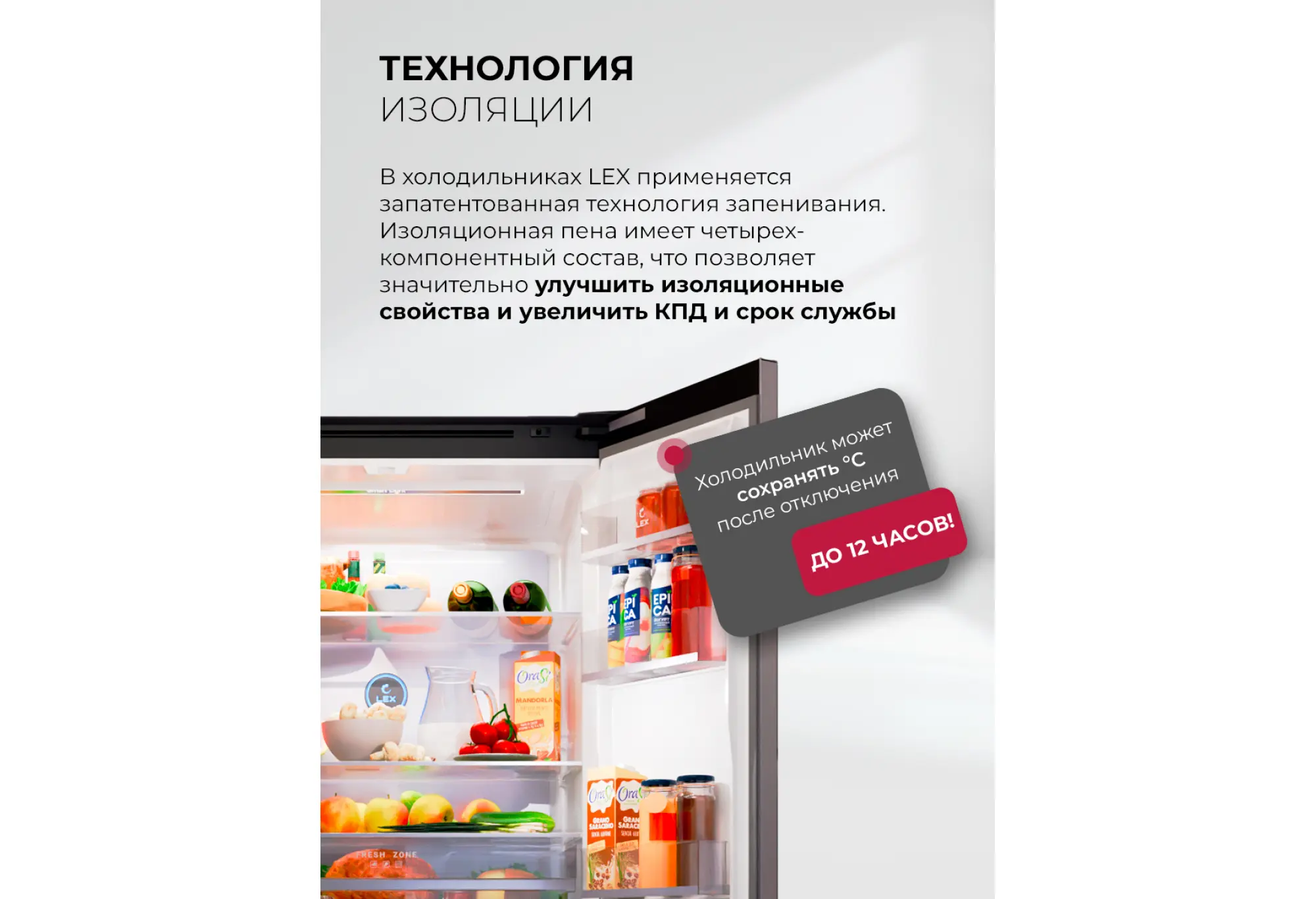 - Сохранение холода до 19 часов при отключении электроэнергии