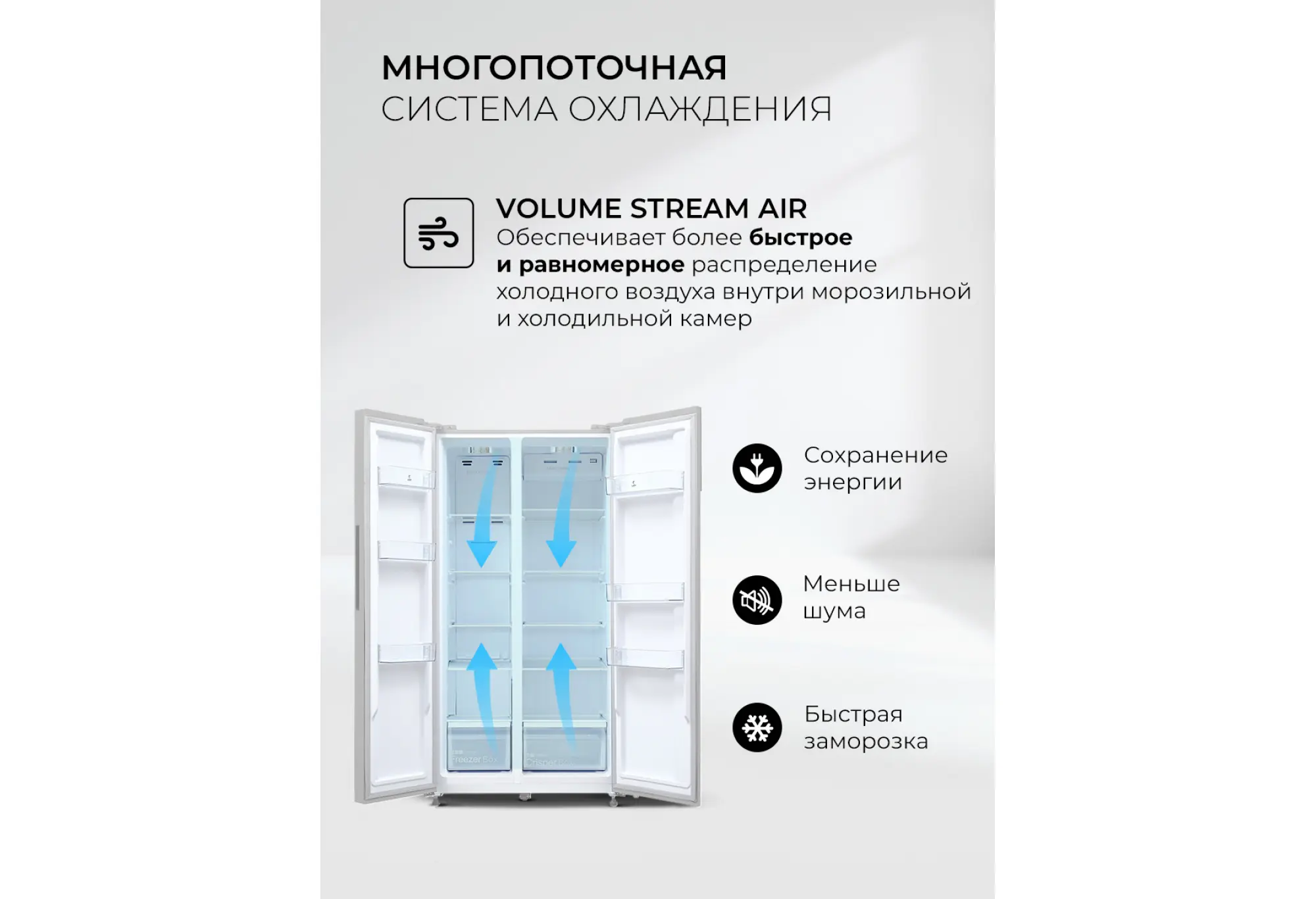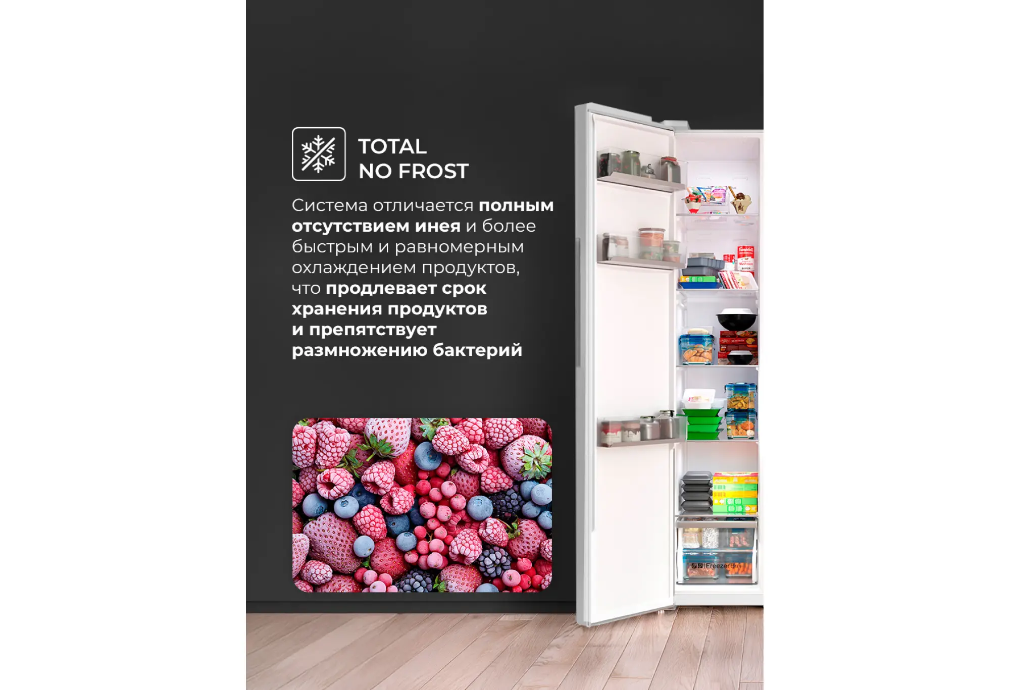 Двухкамерный холодильник LSB 530 вместит все вкусное и полезное. Fresh-зона и многопоточная система вентиляции обеспечат свежесть любого продукта, два контура охлаждения, панель управления и дисплей позволят точно контролировать температуру в каждом отделении. Для простоты эксплуатации модель имеет несколько предустановленных режимов работы: суперзаморозка и быстрое охлаждение, а также смарт-режим и поддержание температуры в течение нескольких часов, которое пригодится при неполадках с электричеством. Благодаря расположению дверей SIDE BY SIDE продукты в обеих камерах можно размещать на комфортных для вас уровнях. Технология Total No Frost делает уход за холодильником максимально легким, чтобы у вас было больше свободного времени, а мощный инверторный компрессор работает почти бесшумно.