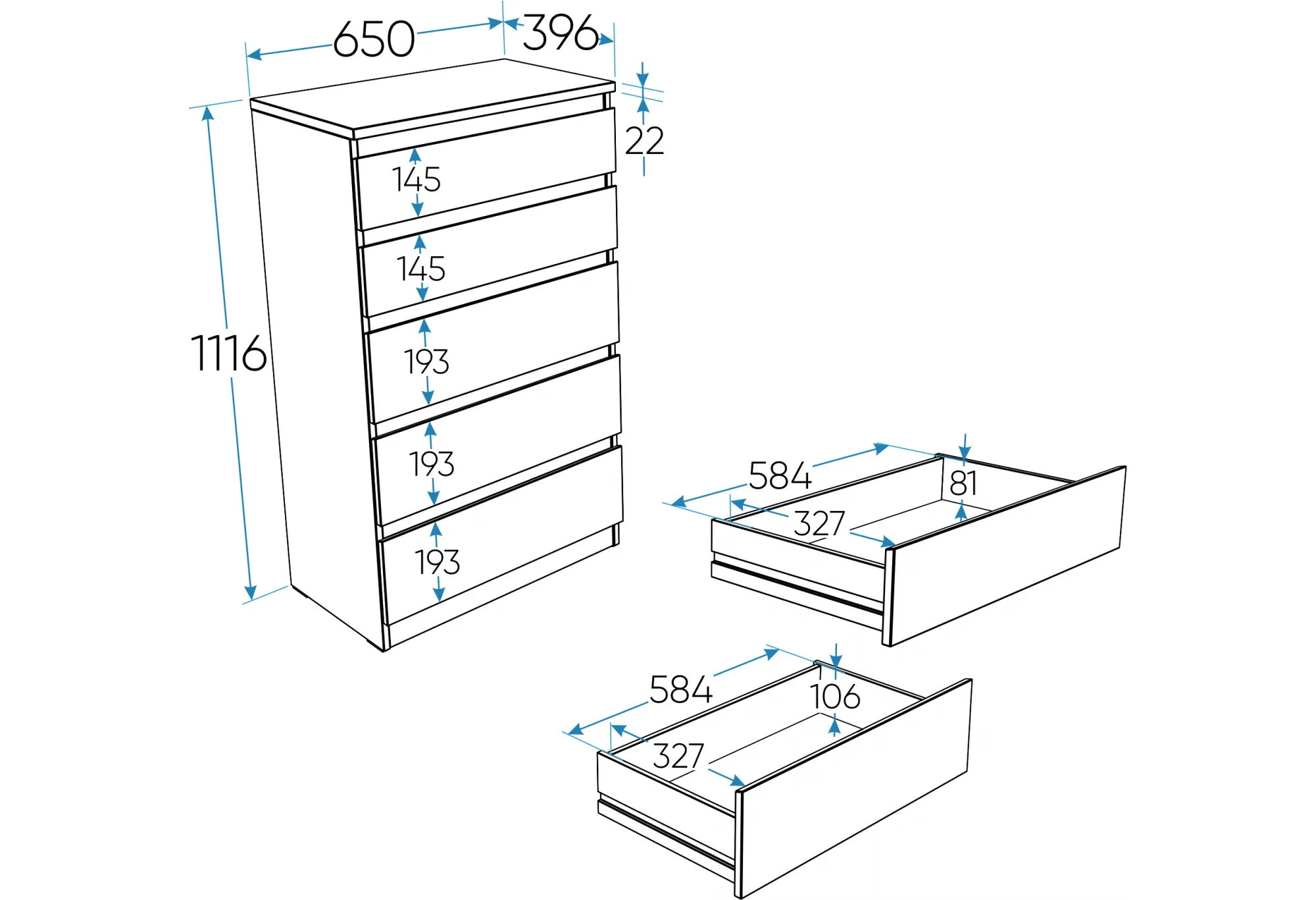 Комод рассчитан на установку у стены и предусматривает крепление к стене для повышенной устойчивости. Это особенно важно в домах с детьми или при активном использовании мебели. Габариты 650х396х1116 мм позволяют разместить комод даже в небольших помещениях, не загромождая пространство, при этом внутреннего объёма ящиков достаточно для повседневных нужд хранения.