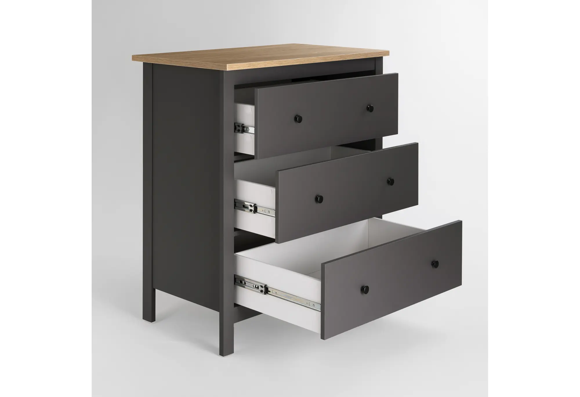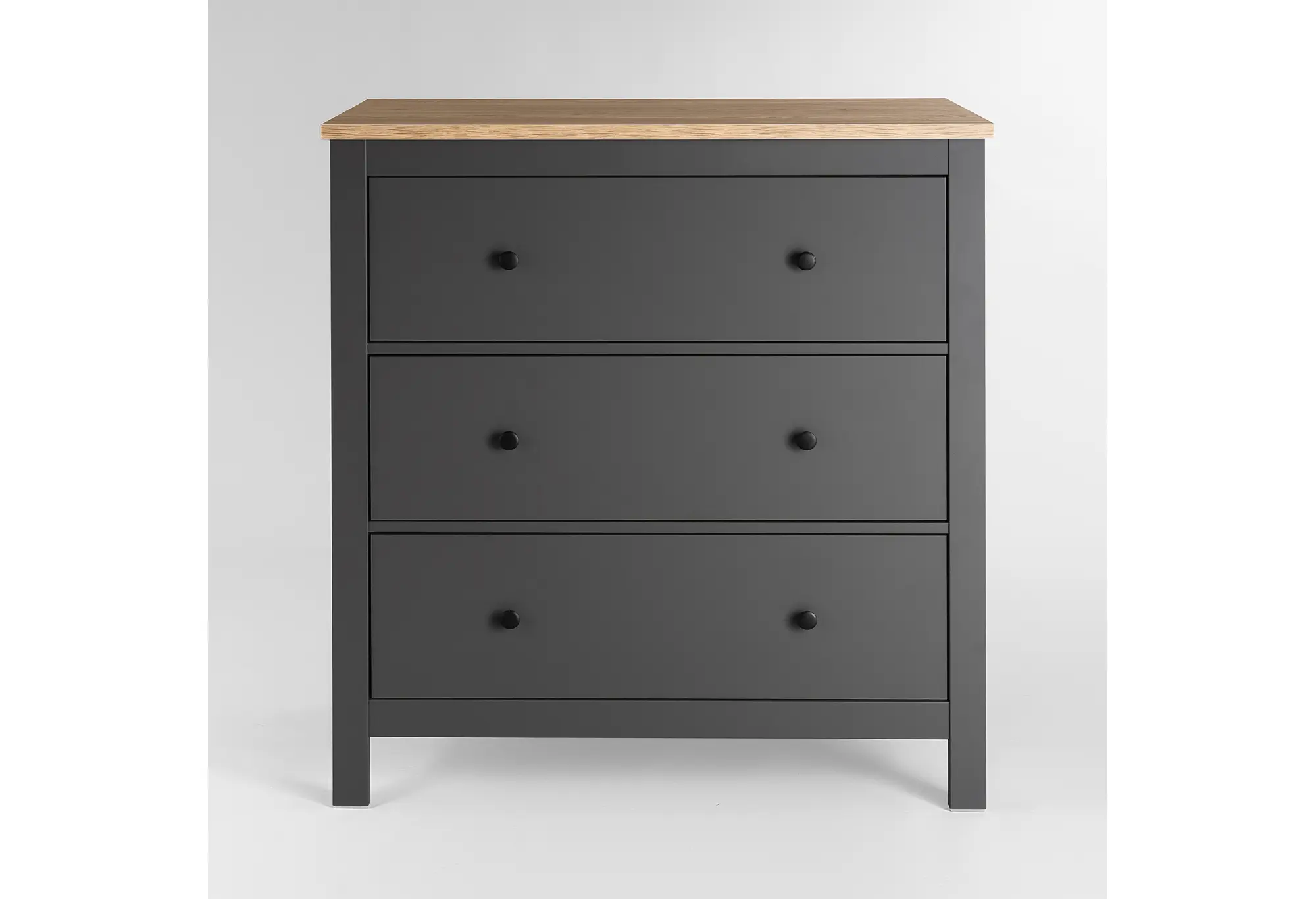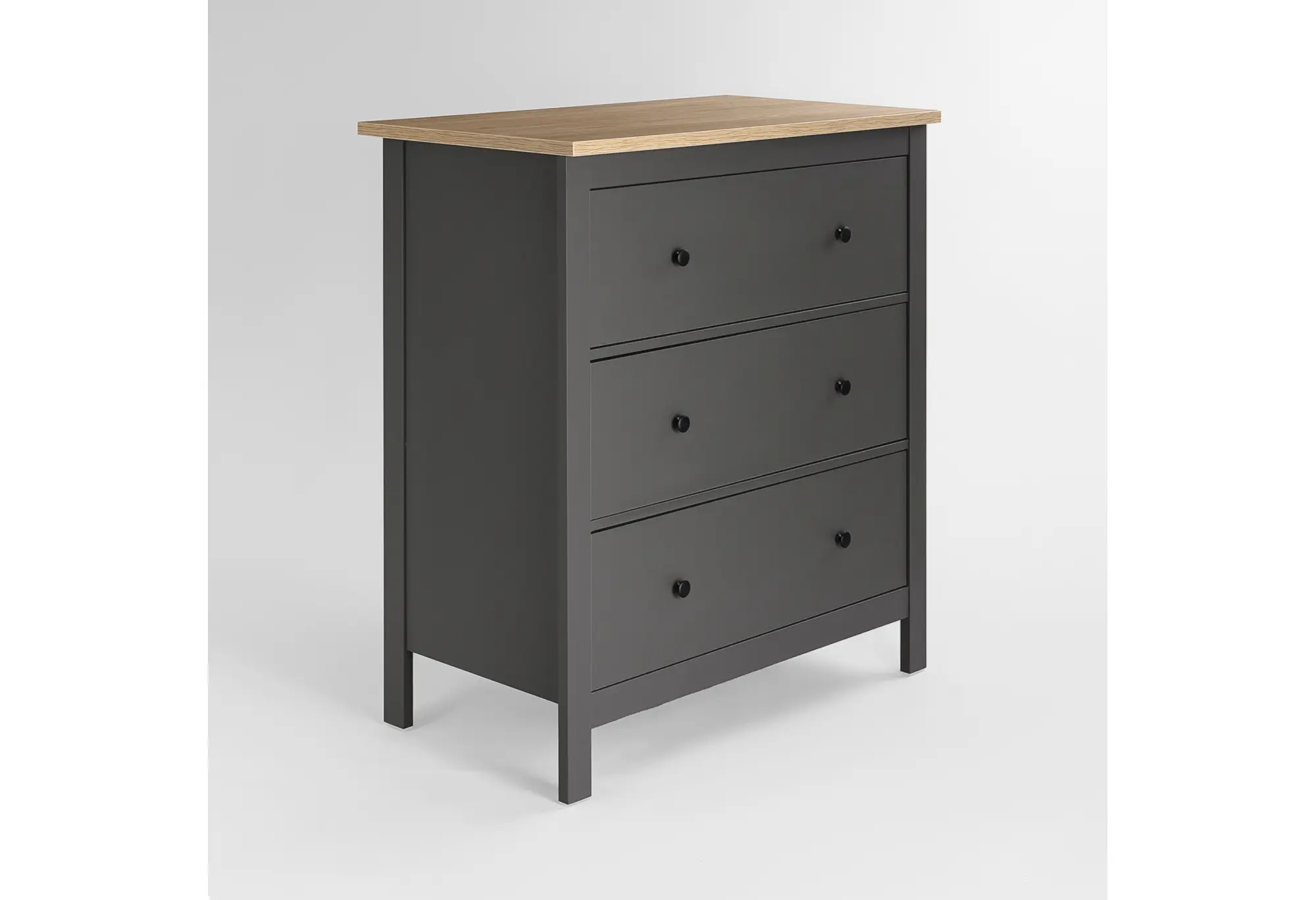 Корпус из ДСП обеспечивает устойчивость и геометрию комода, подходит для повседневного использования в домашних условиях. Три полноразмерных ящика позволяют удобно разложить одежду, текстиль, документы или другие необходимые вещи, поддерживая порядок без лишних усилий. Высота комода делает его удобным и как систему хранения, и как поверхность для декора, светильника или домашней техники небольшого формата.