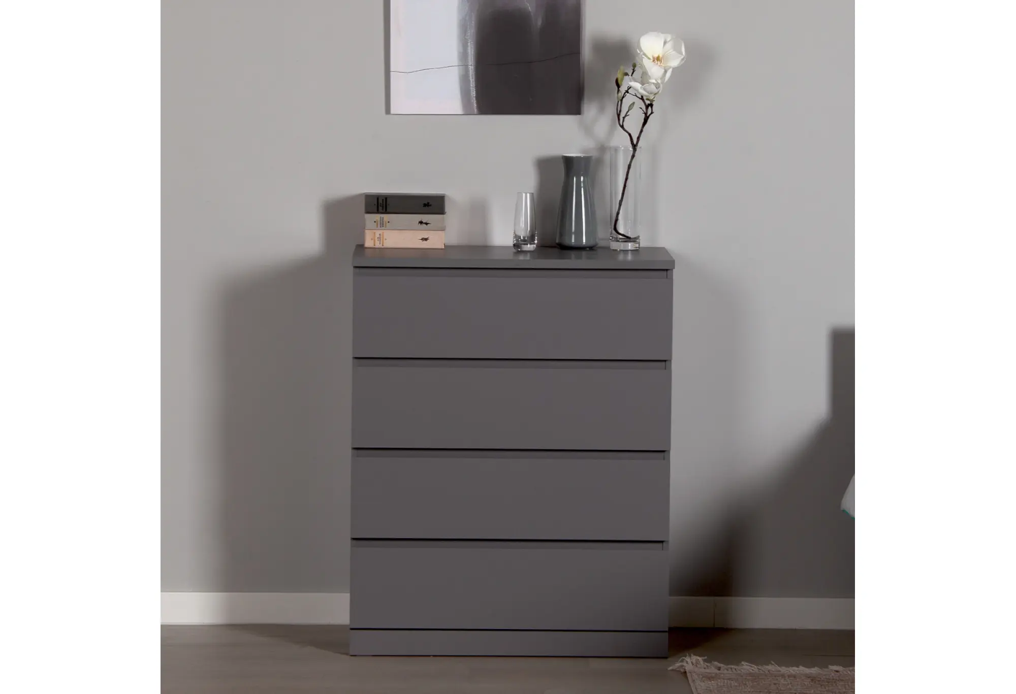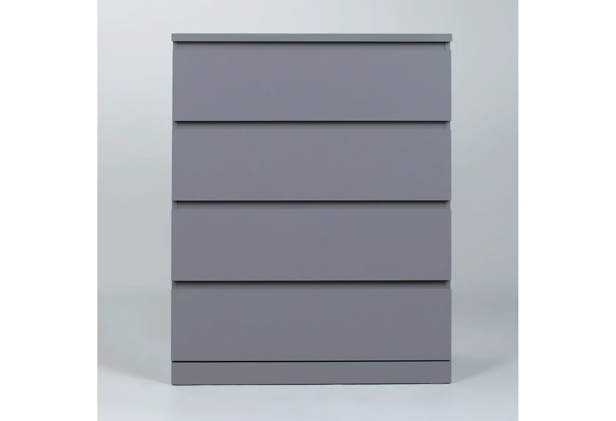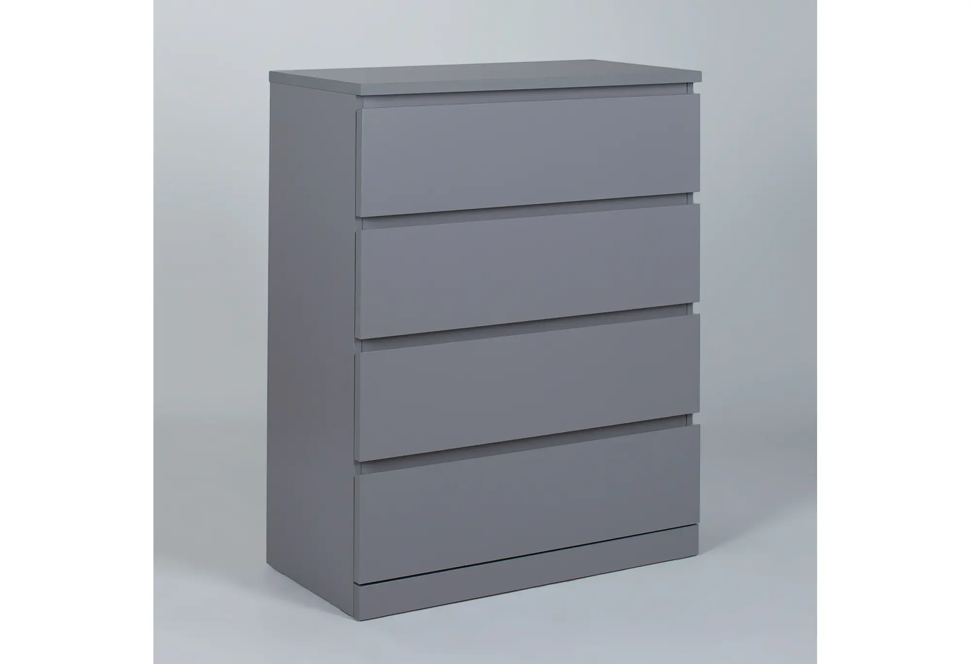 Комод Варма 4 в сером цвете — лаконичное и практичное решение для современной квартиры. Компактная глубина и удобная высота позволяют разместить его в спальне, гостиной, прихожей или рабочем кабинете, не перегружая пространство. Четыре выдвижных ящика обеспечивают удобное хранение повседневных вещей, одежды, белья или документов, помогая поддерживать порядок.