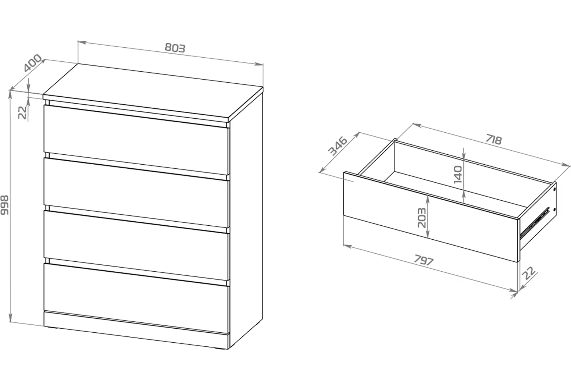 Ящики оснащены высококачественными телескопическими направляющими, которые обеспечивают мягкое и полное выдвижение, облегчая доступ к содержимому. Поверхность окрашена экологически безопасными материалами и при бережном уходе продолжительное время сохраняет аккуратный внешний вид. Комод хорошо сочетается с другими модулями коллекций Фора, Энкель и Варма, что позволяет создавать продуманную систему хранения в едином стиле.