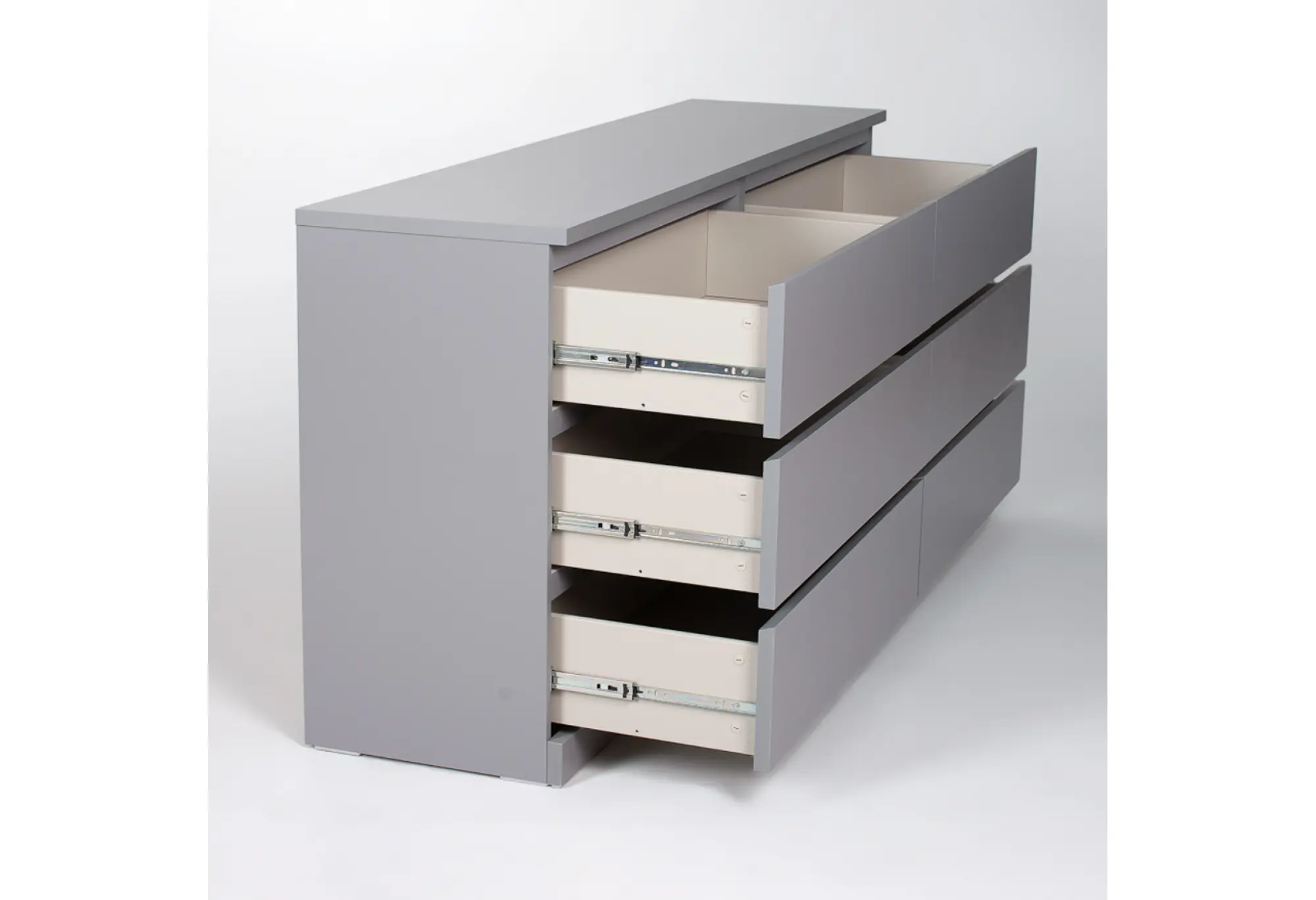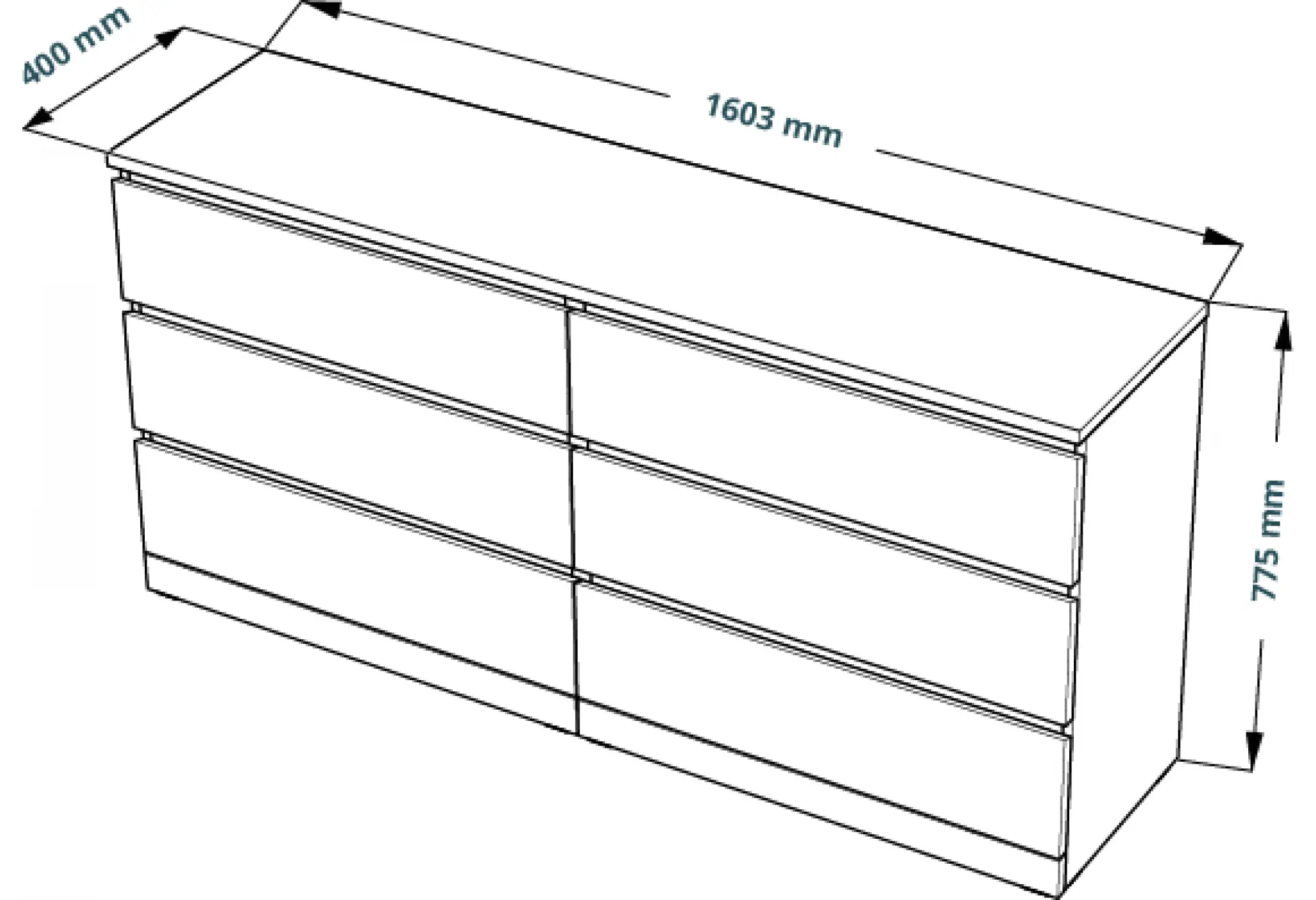 Шесть выдвижных ящиков образуют удобную систему хранения - здесь поместится одежда, текстиль, документы и другие нужные вещи. Корпус выполнен из ДСП, а поверхность покрыта экологически безопасными материалами, устойчивыми к повседневному использованию и сохраняющими аккуратный внешний вид. Телескопические направляющие обеспечивают плавное и мягкое открывание ящиков, что заметно повышает комфорт эксплуатации.