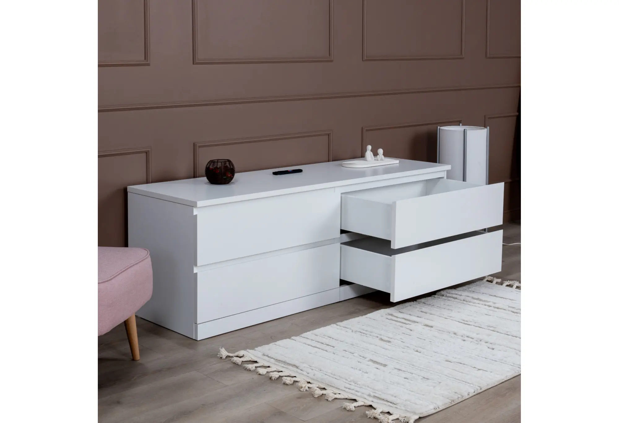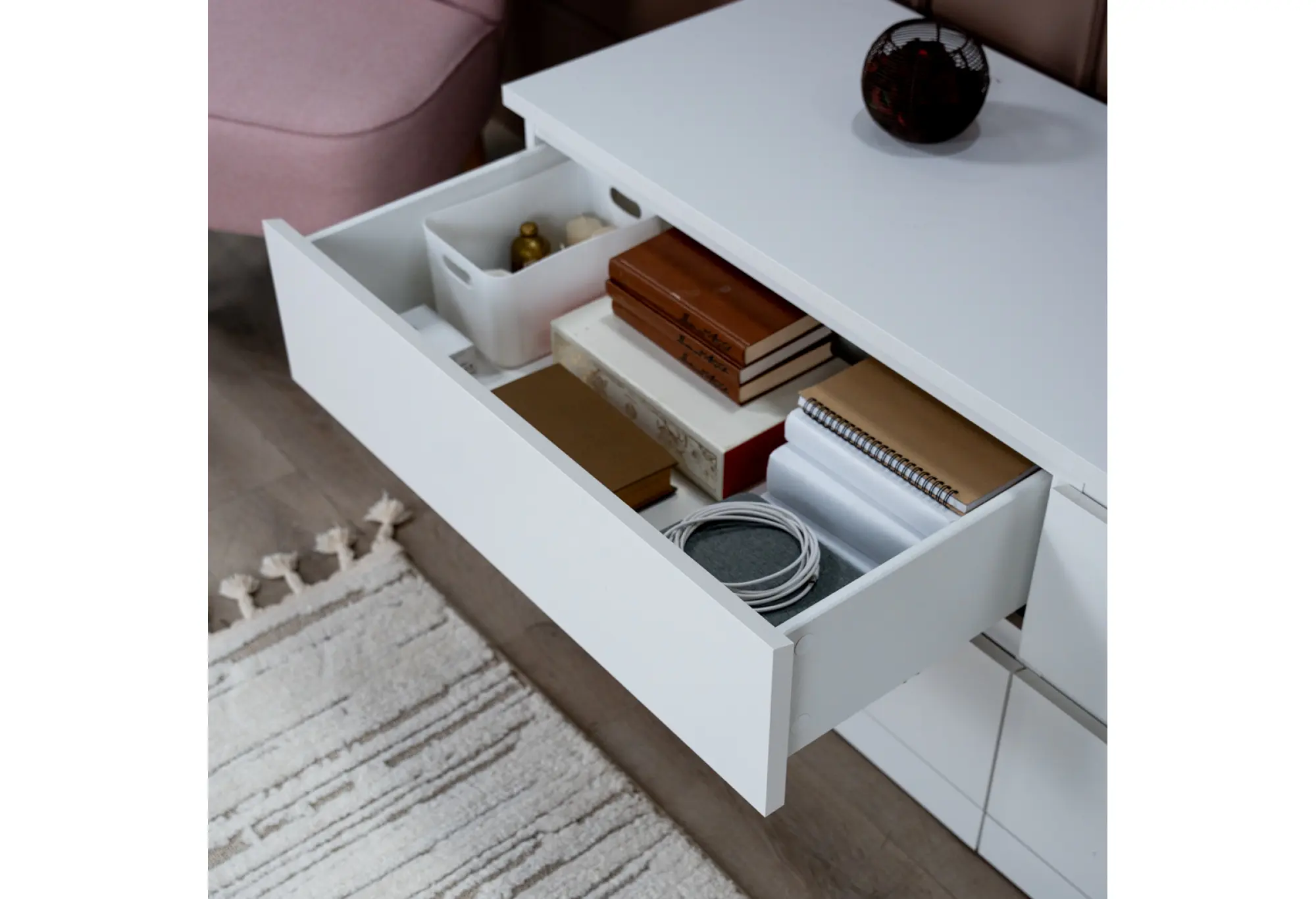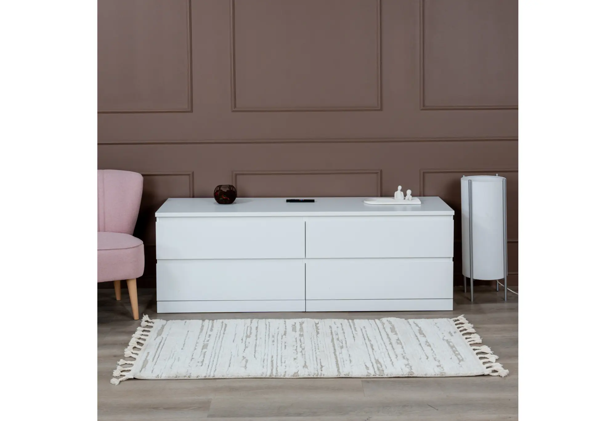 Эта лаконичная тумба-комод в белом цвете создана для тех, кто ценит порядок и чистые линии в интерьере. Широкий и низкий корпус делает модель универсальной она органично впишется и в гостиную под телевизор, и в спальню, и в современный кабинет. Белая поверхность визуально облегчает пространство и подходит как к светлым, так и к контрастным оттенкам стен и пола.