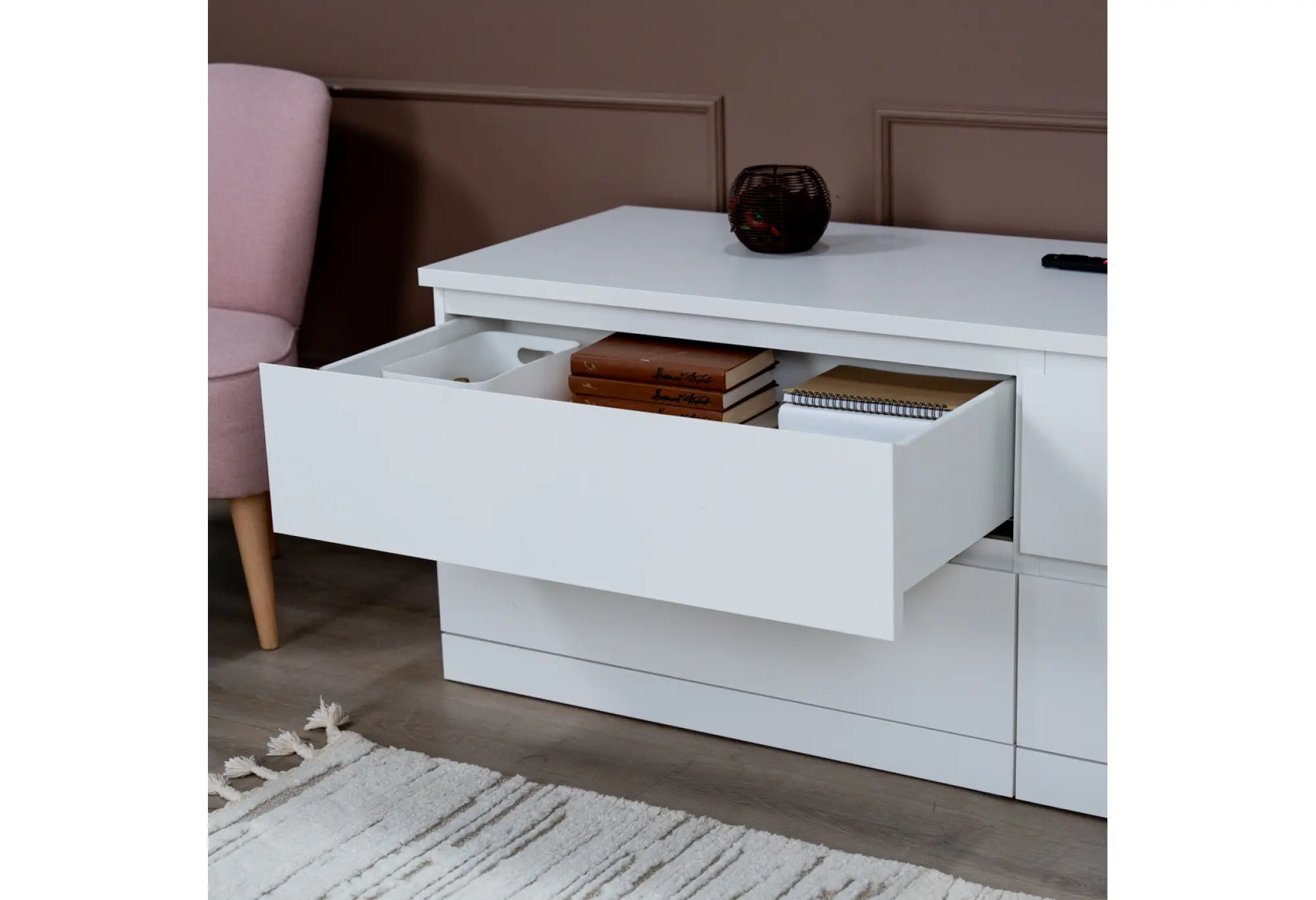 - Низкая конструкция, удобная как под ТВ-тумбу или комод