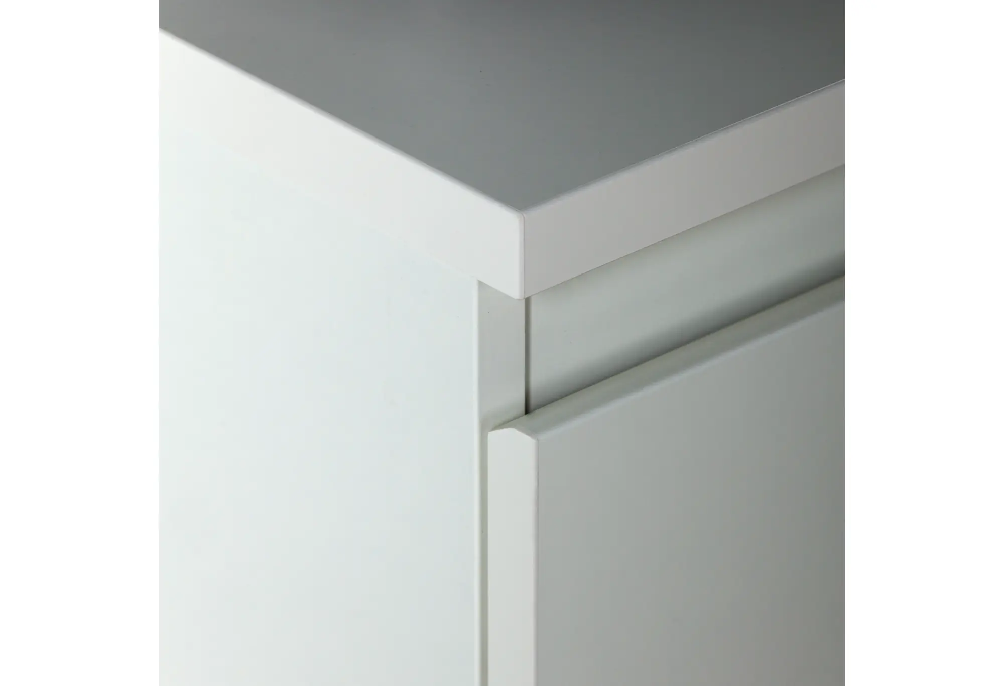 Каждый ящик установлен на шариковых направляющих, благодаря чему выдвигается плавно и полностью, облегчая доступ к содержимому. Конструкцией предусмотрена нагрузка до 8 кг на каждый ящик, что подходит для хранения одежды, текстиля и других бытовых вещей в умеренном объёме. Отсутствие выступающих элементов на фасадах придаёт изделию аккуратный, цельный вид и делает его удобным при размещении в узких проходах.