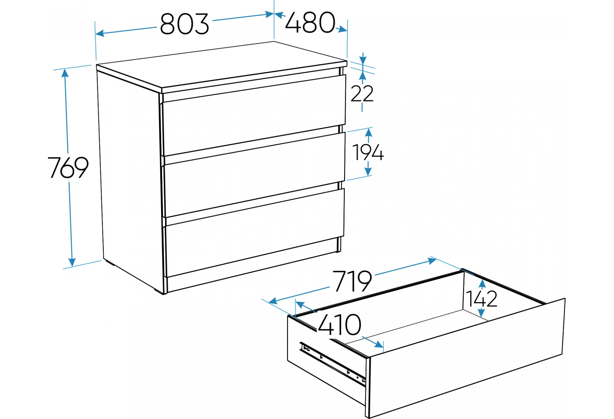 Фасады без накладных ручек образуют ровную плоскость, а захваты для открывания интегрированы в конструкцию, что придаёт комоду лаконичный внешний вид и упрощает уход за поверхностью. Высота 764 мм позволяет использовать верхнюю крышку как дополнительную открытую площадку для нужных под рукой предметов. Конструкция предусматривает крепление к стене, что повышает устойчивость и делает эксплуатацию более безопасной, особенно в помещениях, где важна надёжность установки. Комод рассчитан на использование как в жилых, так и в общественных интерьерах, с установленным гарантийным сроком для каждого типа помещений.