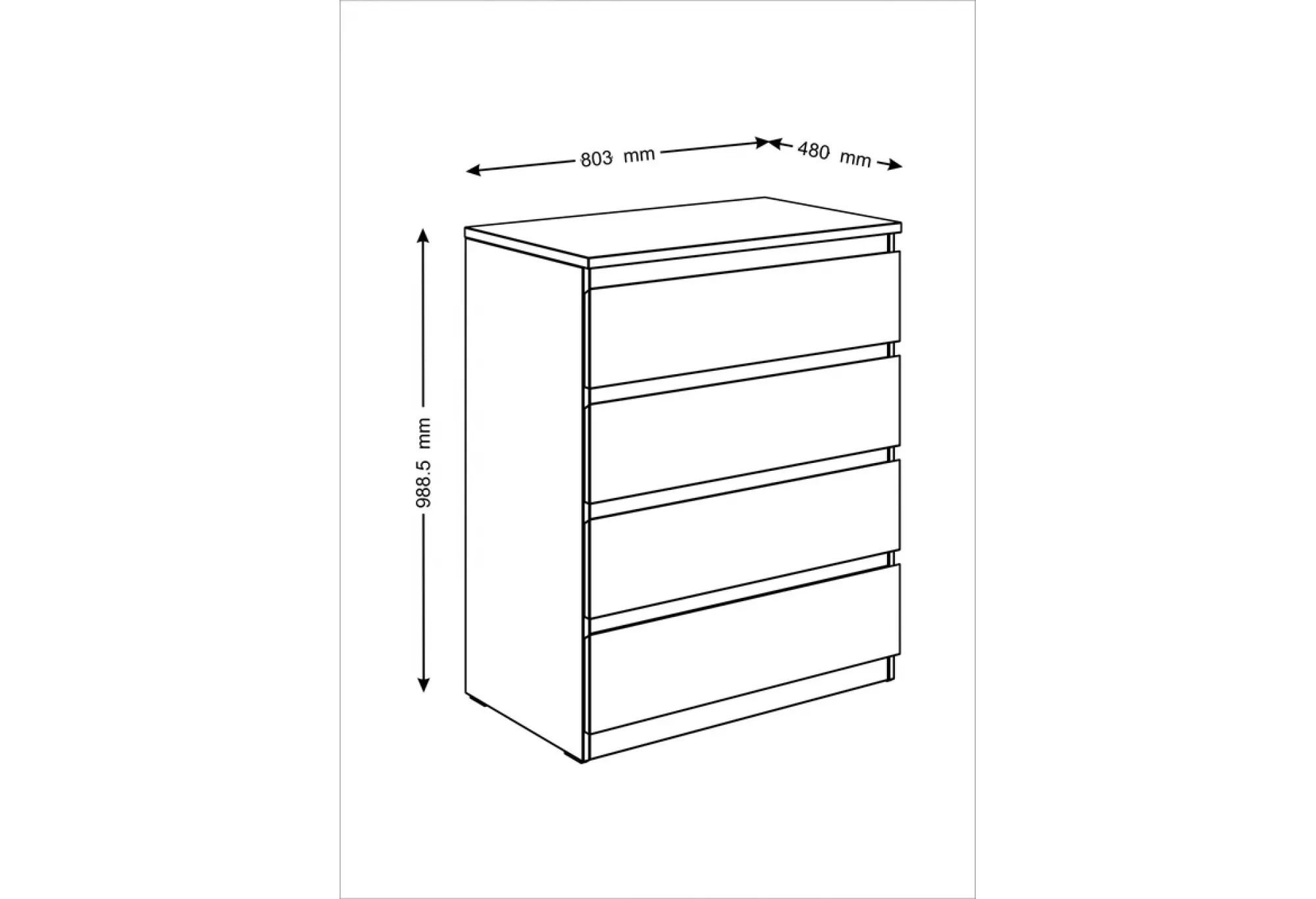Комод МАЛЬТА с четырьмя выдвижными ящиками, 803х480х988, цвет Дуб Сонома. Крепится к стене. Гарантийный срок для жилых помещений 24 месяца, для общественных помещений - 18 месяцев.