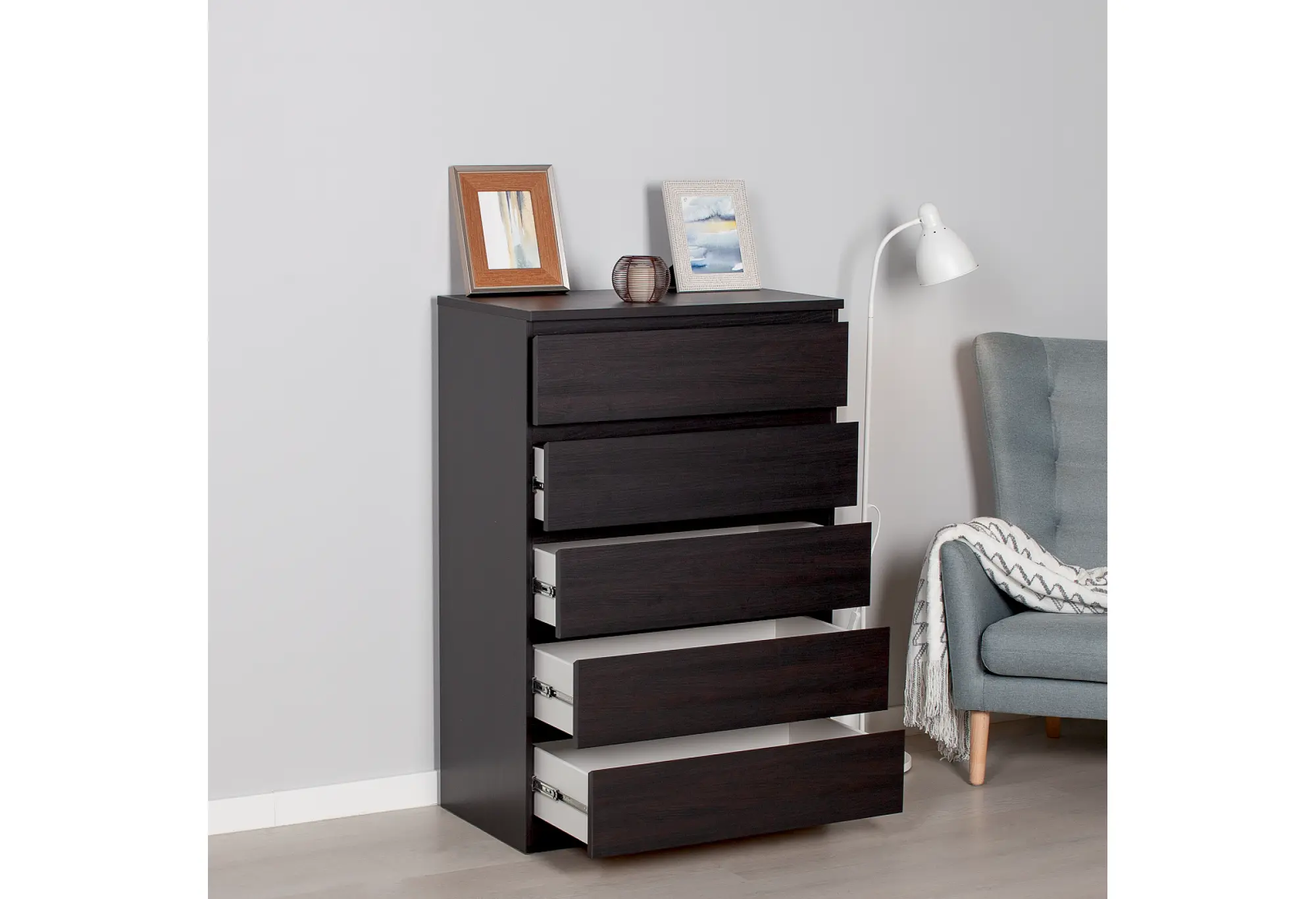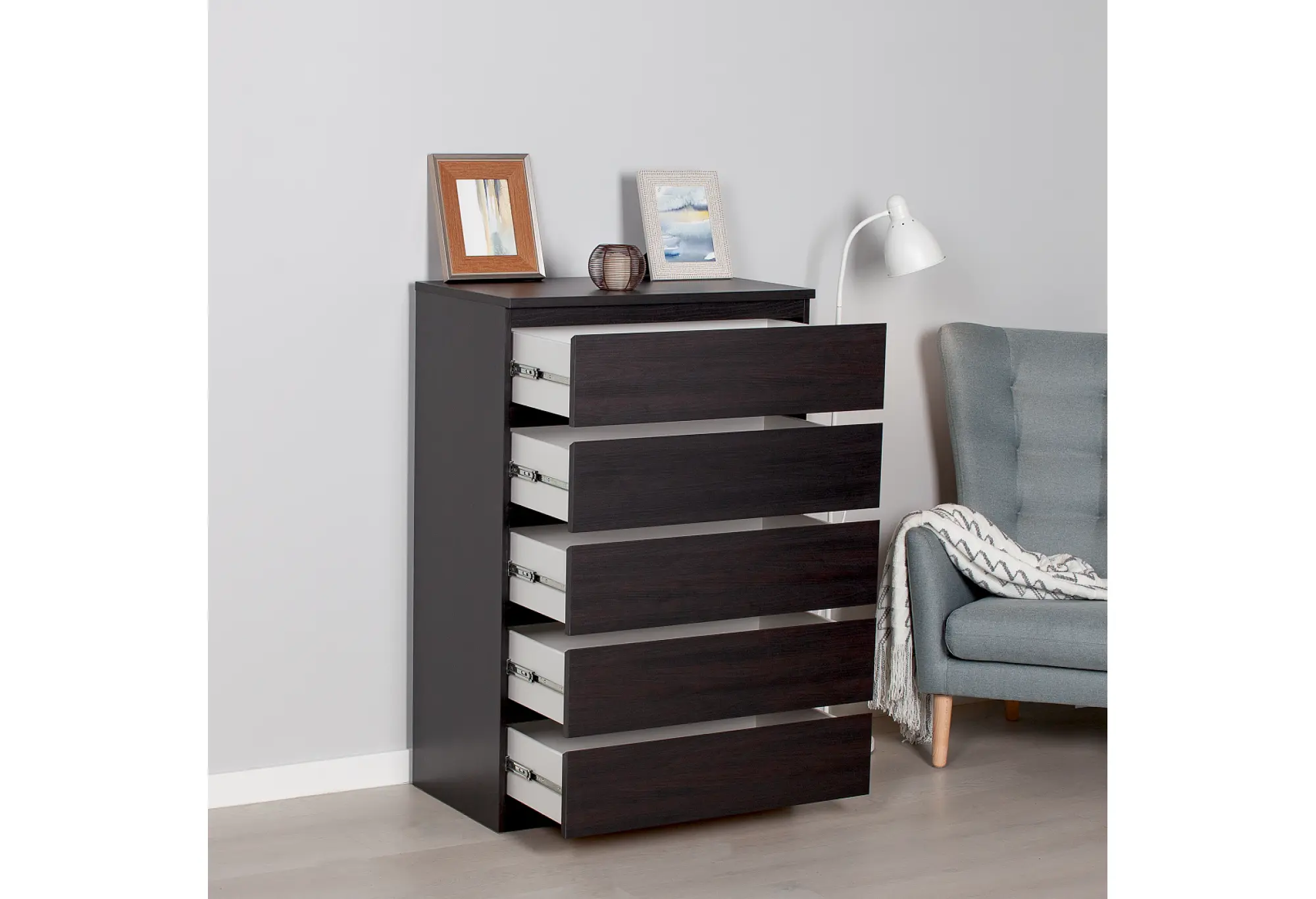 - Комод МАЛЬТА высокий с пятью одинаковыми выдвижными ящиками, цвет Дуб Венге