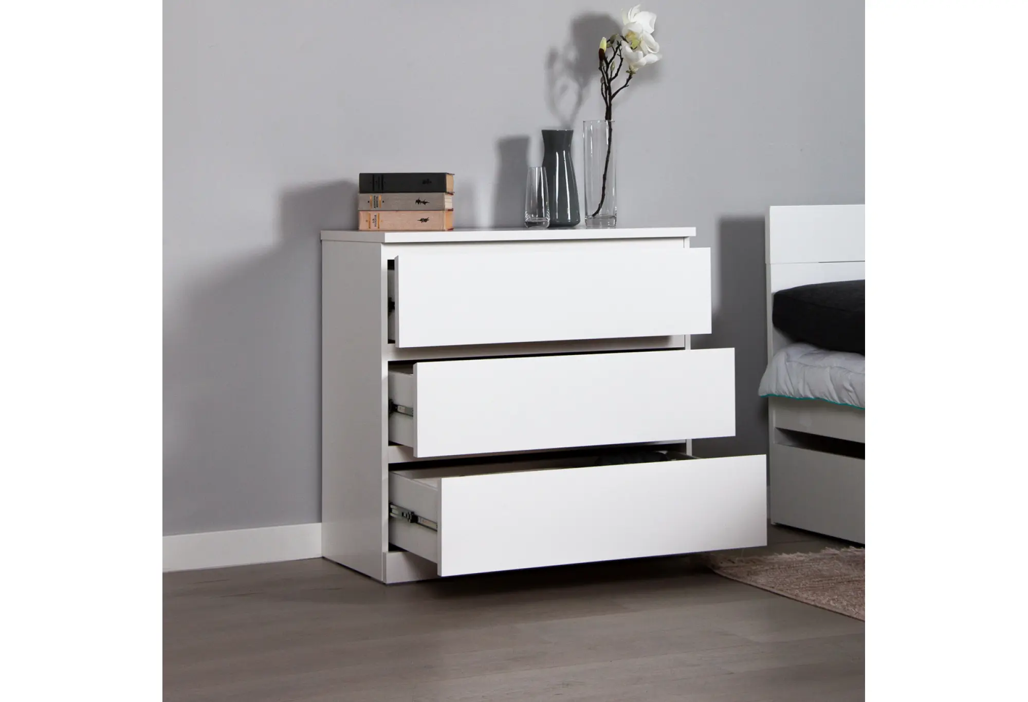 Комод Варма 3 с тремя выдвижными ящиками, цвет белый