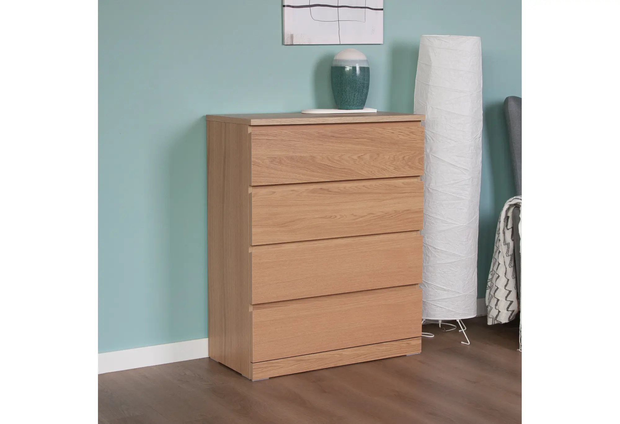 Комод «Варма 4» в цвете дуб белёный – практичное решение для тех, кому важно одновременно и оформление интерьера, и удобство хранения. Лаконичный дизайн без лишних деталей легко вписывается в современные и классические интерьеры, не перегружая пространство и визуально поддерживая порядок в комнате.