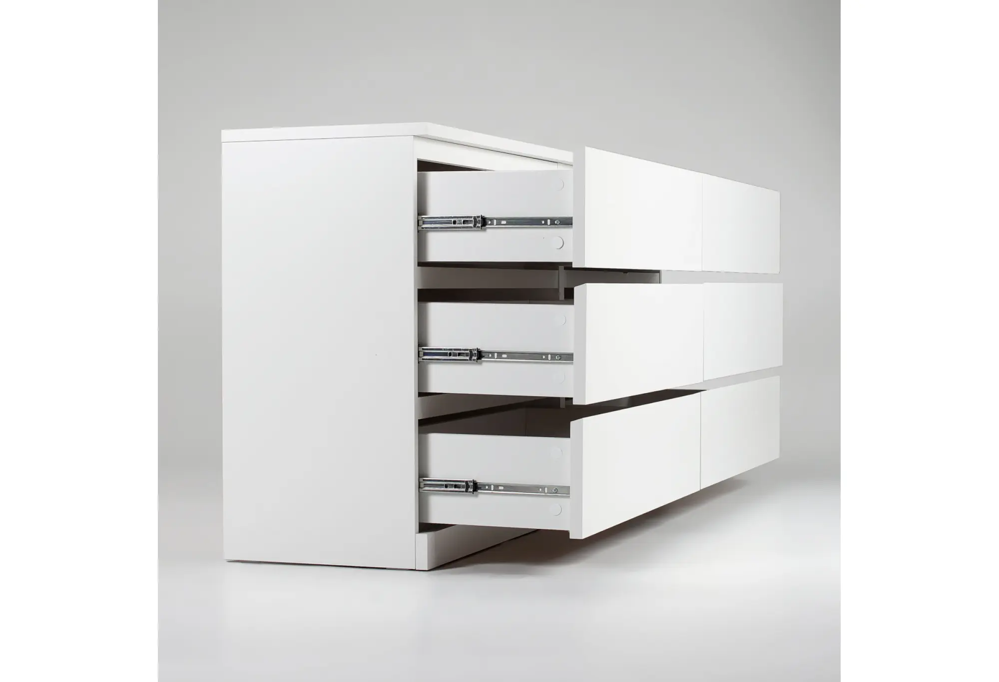 - Качественные телескопические направляющие с плавным выдвижением ящиков
