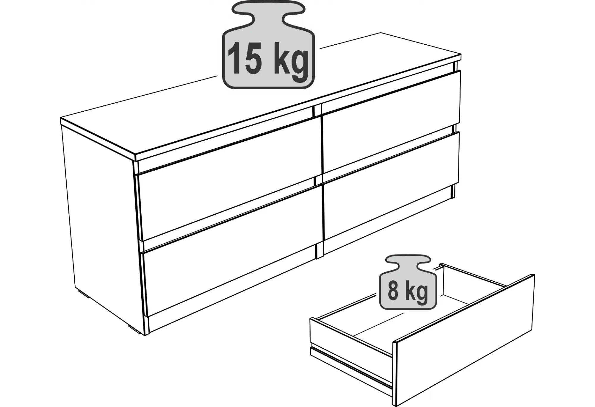 Тумба КАСТОР с четырьмя выдвижными ящиками — практичное решение для хранения вещей в доме или офисе. Продуманная длина позволяет эффективно использовать пространство вдоль стены, под телевизором или в зоне отдыха. Четыре наружных ящика обеспечивают удобный доступ ко всем хранящимся предметам - от белья и одежды до документов и бытовых мелочей.