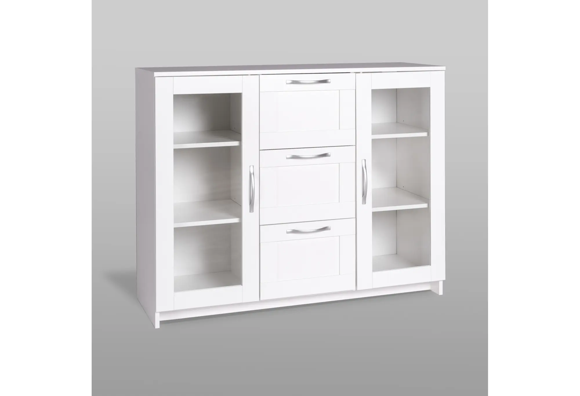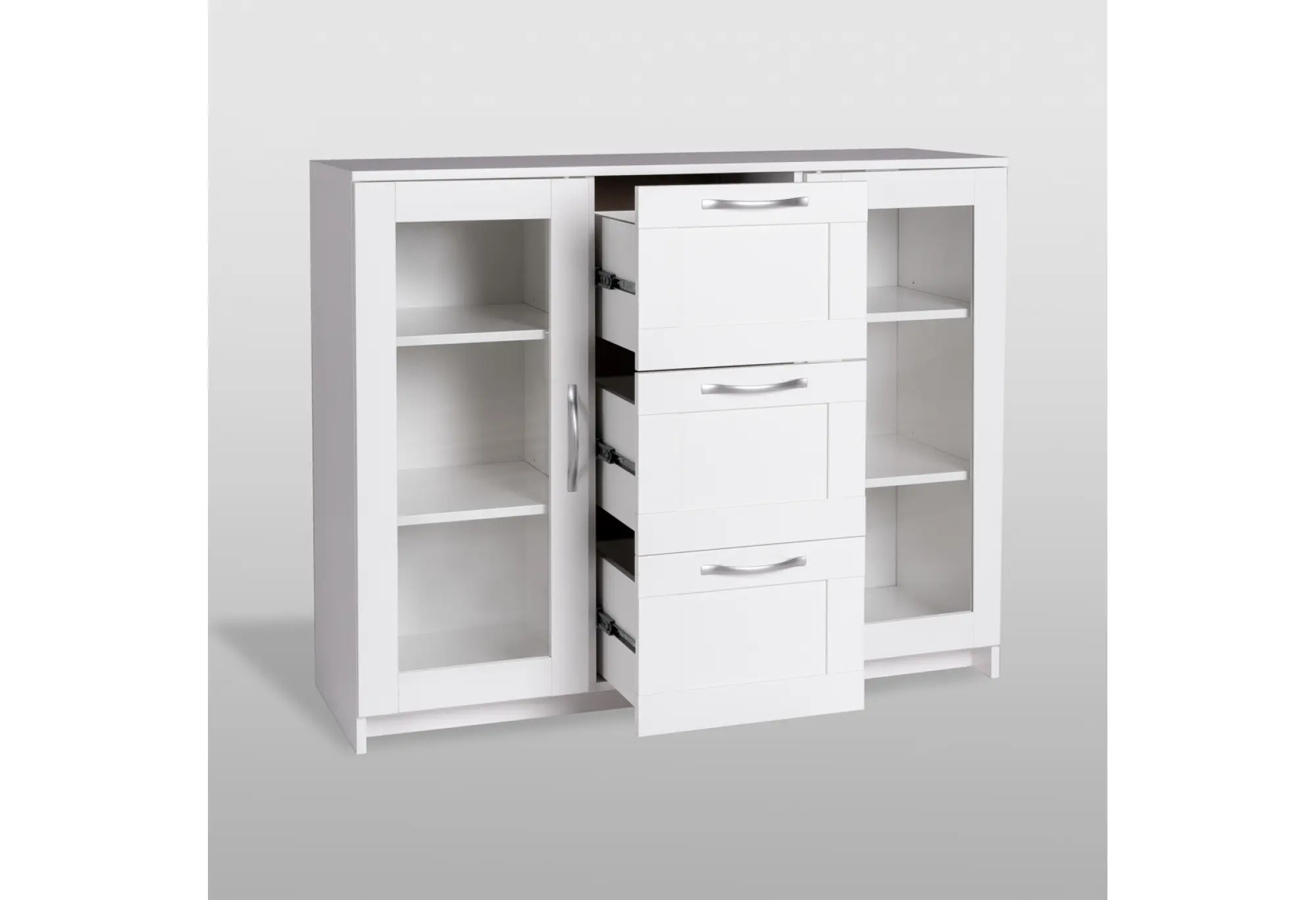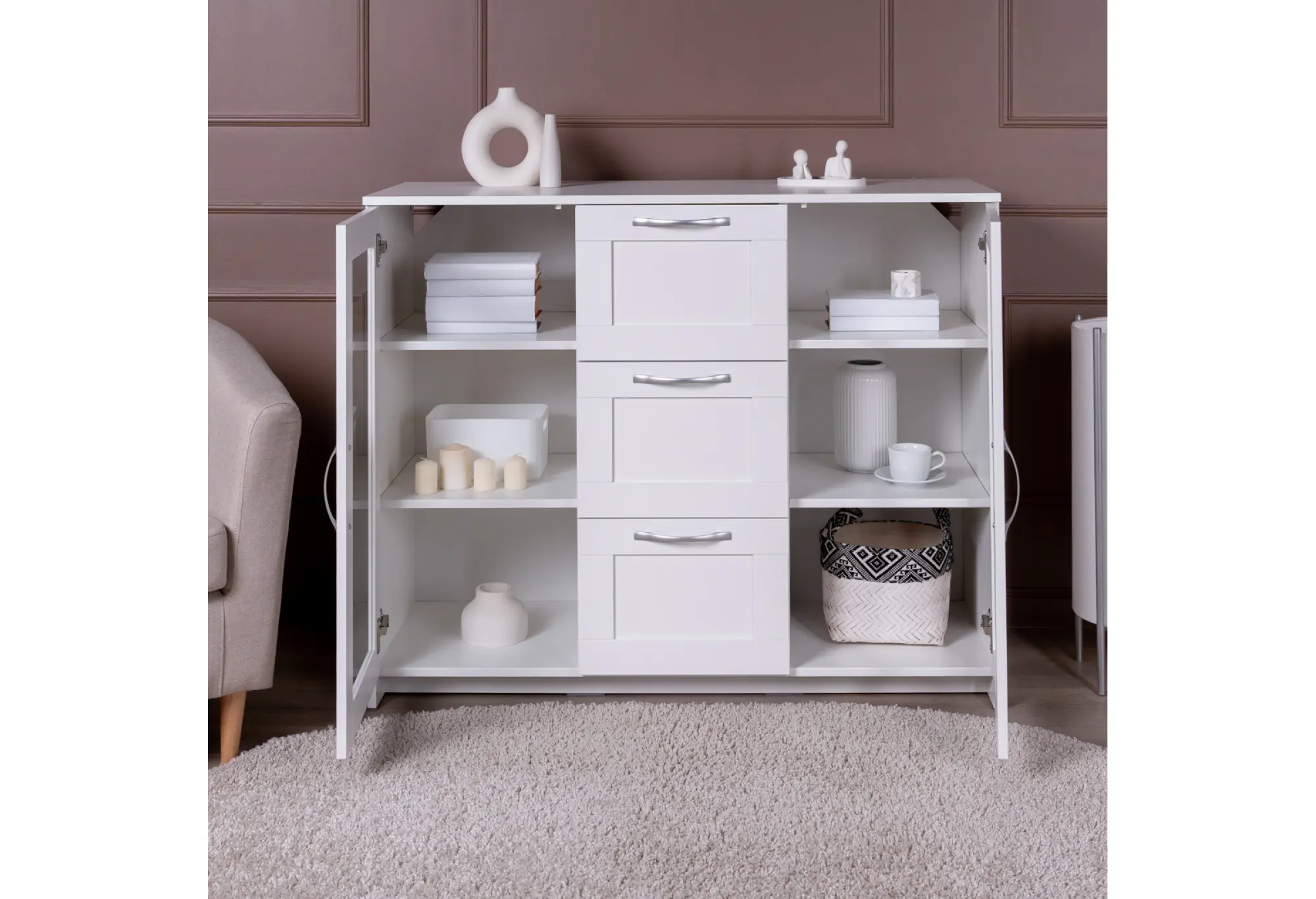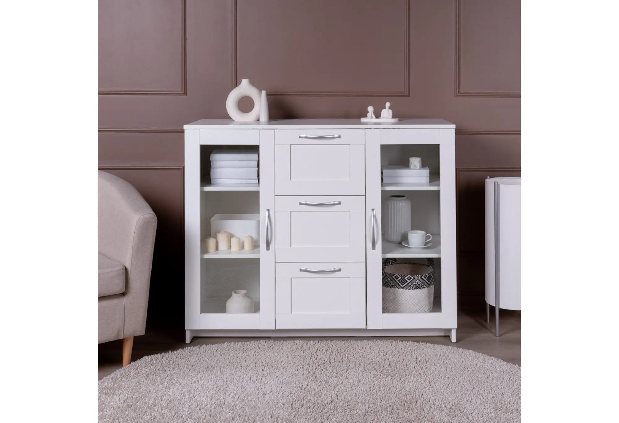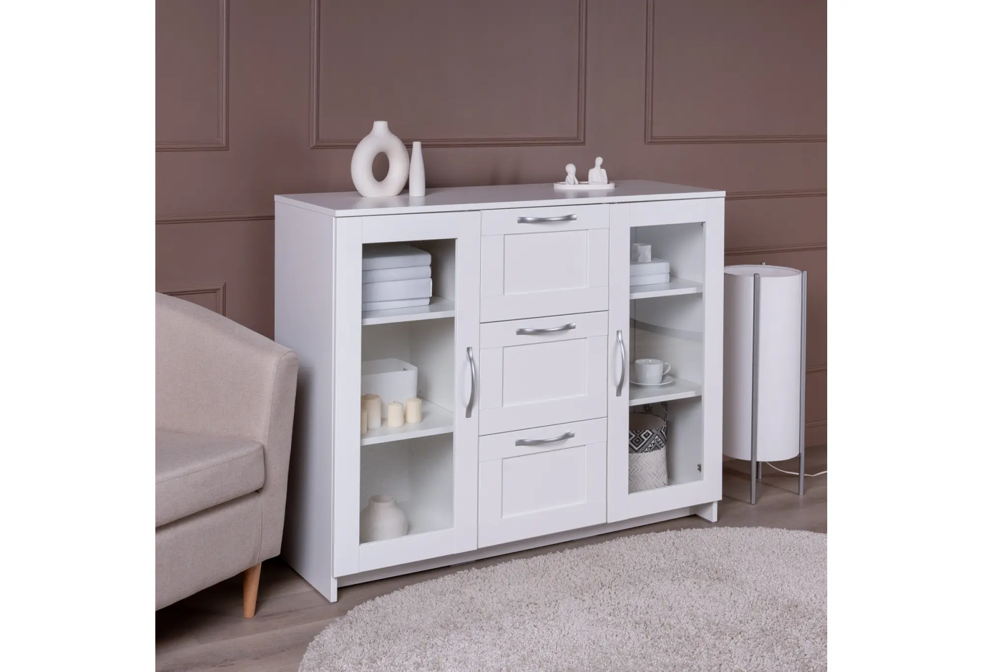 Тумба СИРИУС с двумя стеклянными дверьми и тремя ящиками, цвет белый