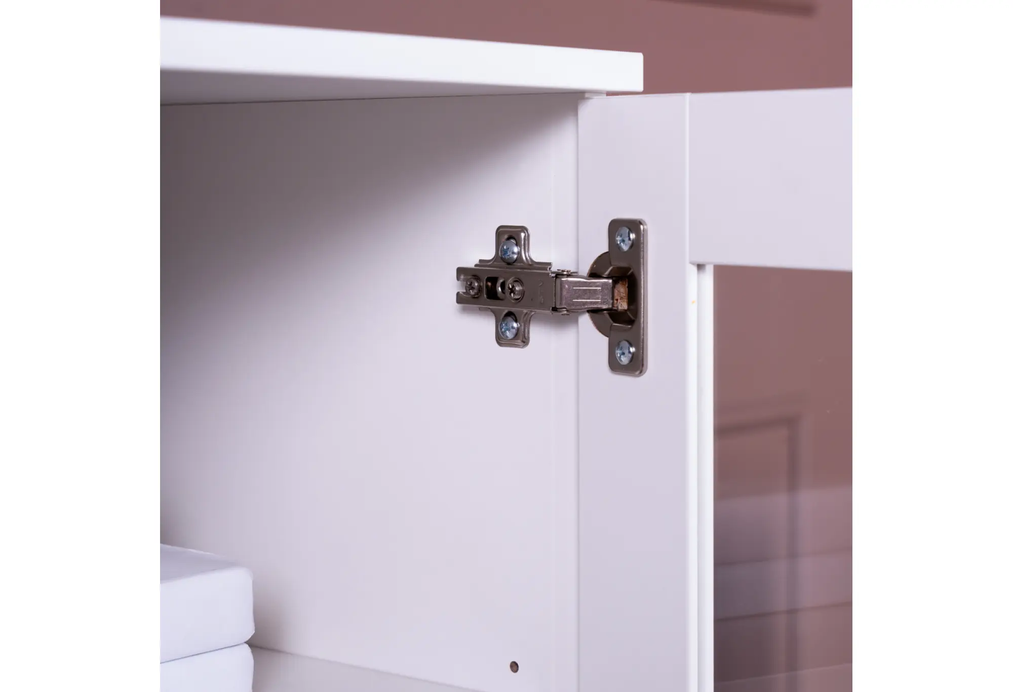 Тумба СИРИУС с двумя стеклянными дверьми и тремя ящиками, 1171х412х946, цвет Белый. Изготовлена из кашированного ДСП толщиной 16 мм. Крепится к стене. Гарантийный срок для жилых помещений 24 месяца, для общественных помещений - 18 месяцев.