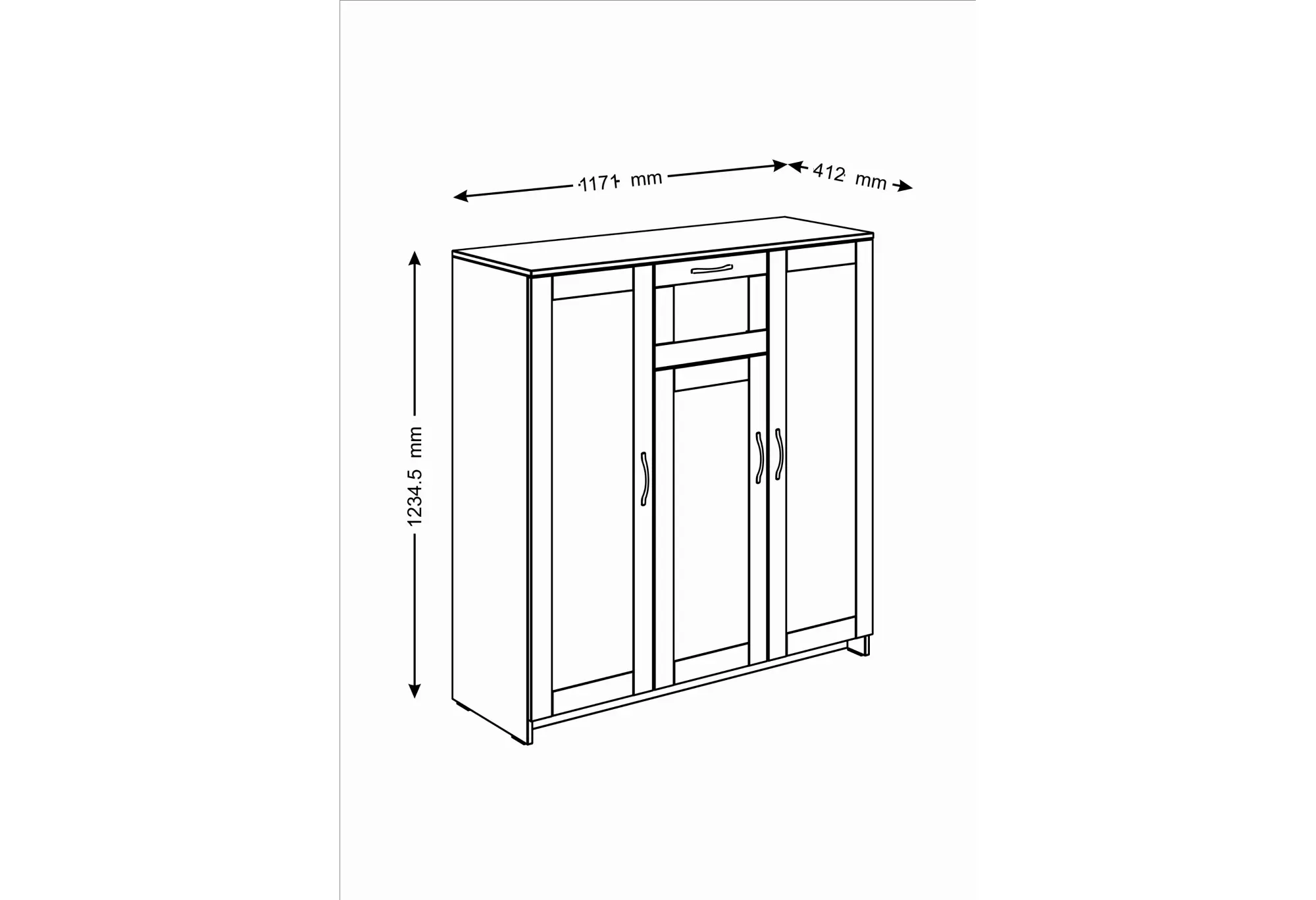 Тумба СИРИУС трехдверная с одним наружным выдвижным ящиком, 1171х412х123, цвет Дуб Сонома. Изготовлена из кашированного ДСП толщиной 16 мм. Крепится к стене. Гарантийный срок для жилых помещений 24 месяца, для общественных помещений - 18 месяцев.