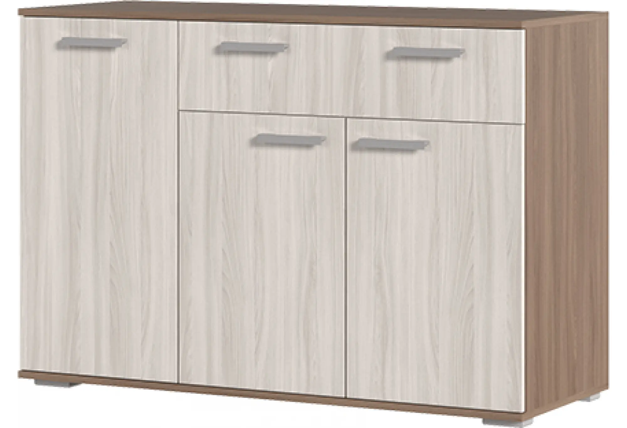 Комод «К-4» — практичное решение для хранения в гостиной, спальне или прихожей. Продуманная компоновка с тремя распашными дверцами и выдвижными ящиками помогает удобно разложить документы, текстиль, одежду и повседневные мелочи, освобождая пространство и поддерживая порядок в комнате.
