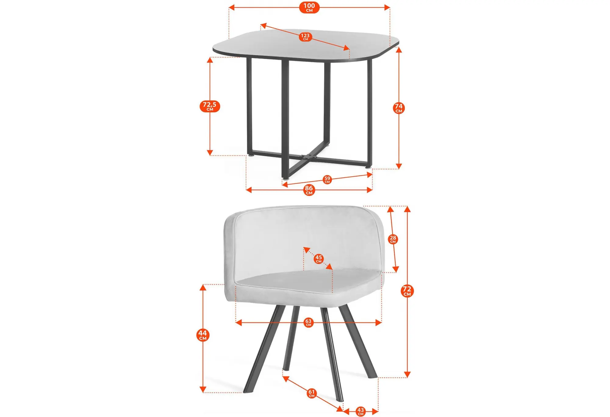 Комплект QUADRON из коллекции MODERN — это идеальное решение для тех, кто хочет добавить в свой интерьер стиль и элегантность, при этом сохраняя простоту и функциональность. Благодаря своему лаконичному дизайну, он прекрасно впишется как в кухонное, так и в гостевое пространство, создавая гармонию и уют. Стол, выполненный из МДФ, обеспечивает легкость в уходе и стойкость к воздействию жидкостей и высоких температур. Это особенно важно для столов, которые используются ежедневно. Металлические ножки придают конструкции стабильность и современный вид, а отсутствие острых углов делает его безопасным для детей и домашних животных. Размеры стола, позволяющие разместить до четырех человек, способствуют комфортному общению и наслаждению еду в кругу близких. Стулья, оформленные в стиле минимализма, выделяются не только своим внешним видом, но и качеством. Мягкий велюр создает уютную атмосферу, а современная цветовая гамма делает комплект универсальным для разных интерьеров — от классического до современного. Элегантность и практичность — вот ключевые преимущества комплекта QUADRON. Он не только украсит ваш дом, но и станет надежным местом для общения и встреч с любимыми. Это идеальный выбор для тех, кто ценит стиль, комфорт и долговечность в мебели.