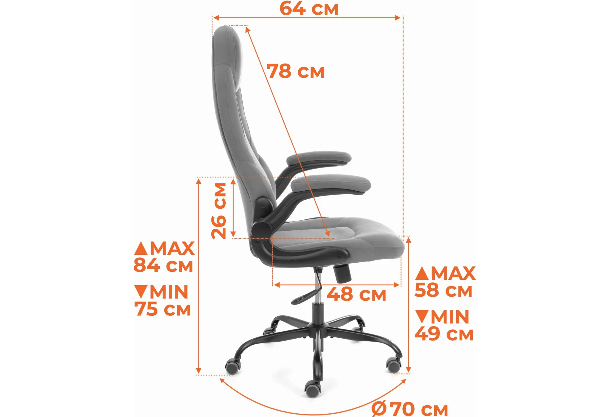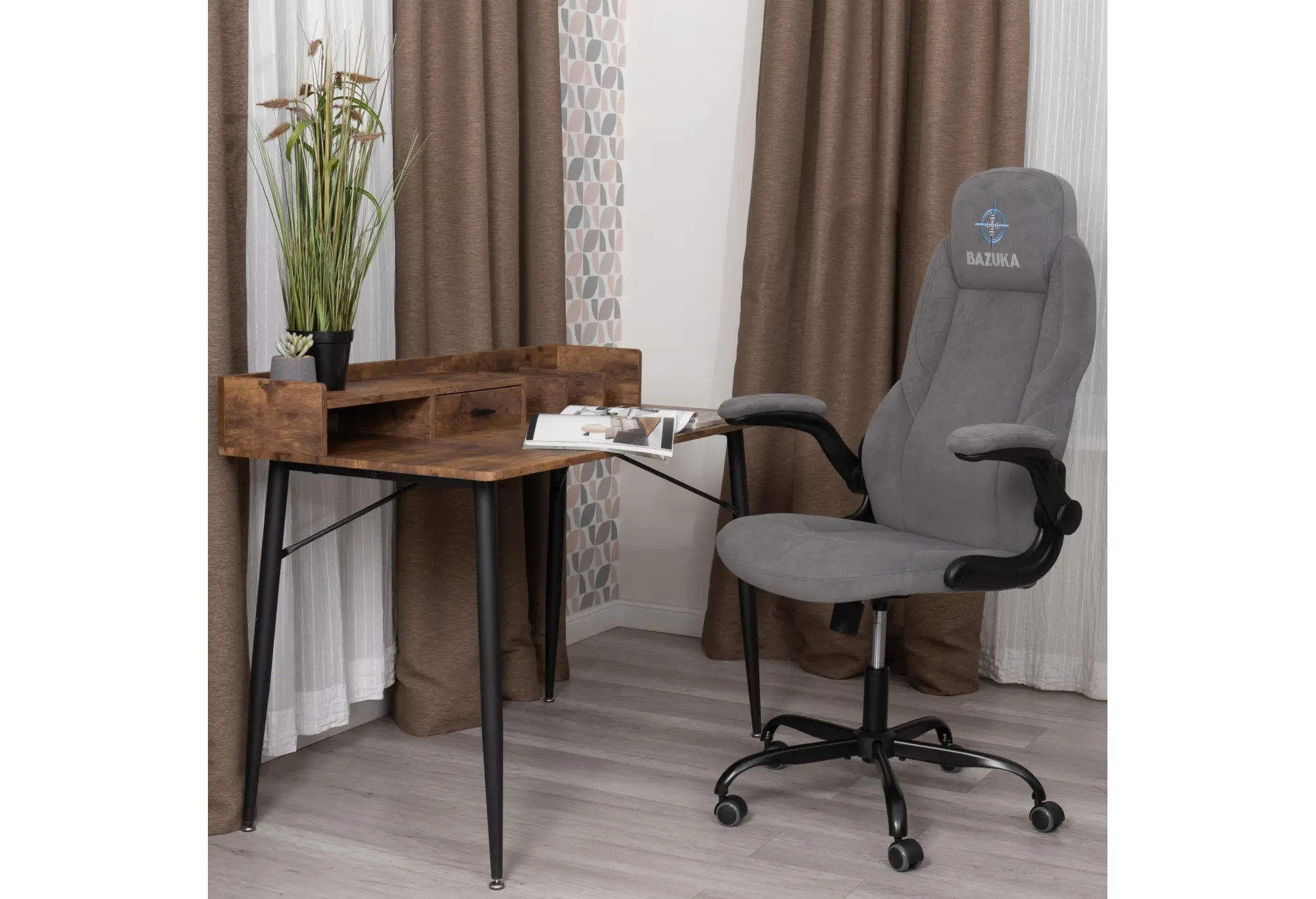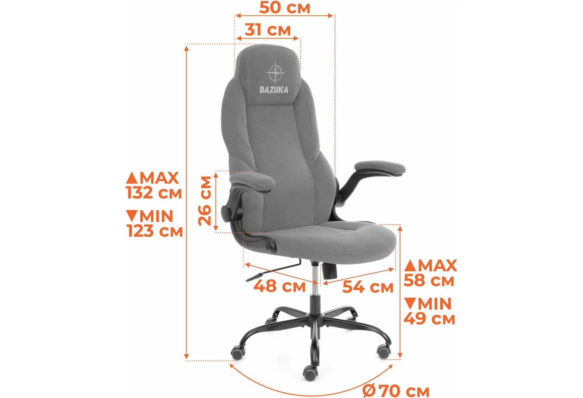 Компьютерное кресло Bazuka – бомбическое сочетание привлекательности, эргономичности и надёжности. Стильная модель будет удачно смотреться как геймерском пространстве, офисе, так и в рабочем кабинете вашего загородного дома или квартиры. Крепкий каркас изготовлен из экологически чистой и безвредной фанеры толщиной более 10 мм. Анатомическая спинка и удобное сиденье с мягким наполнителем из пенополиуретана (до 35 кг/м2) стандартной плотности легко подстраиваются под контуры тела, не деформируются со временем. Откидные пластиковые подлокотники с накладками придадут дополнительный комфорт рукам и шеи, механизм регулировки высоты позволят принять удобную позу и снять напряжение с позвоночника. Жёсткость качания с фиксацией в вертикальном положении настраивается специальным барабаном. Cтальная крестовина (разборная) диаметром 700 мм, покрыта черной порошковой краской, прочна и имеет долгий срок службы. Подголовник кресла с оригинальной вышивкой поможет снять нагрузку с плечевой зоны, обеспечит отдых для головы во время работы. Высококачественные полиамидные ролики дополнительно прорезинены для предотвращения повреждения напольного покрытия, отлично подходят для использования на паркете и ламинате. Ролики и крестовина в креслах бренда TETCHAIR соответствуют стандарту BIFMA. Во всех креслах бренда TETCHAIR используются газлифты 3 класса, он способен выдерживать вес до 120 кг. Данная модель представлена сером цвете. Флок, используемый при изготовлении кресла, выдерживает до 50 000 циклов на истирание по Мартиндейлу. Стильное компьютерное кресло Bazuka отличается повышенным комфортом, лёгкостью в уходе и презентабельным внешним видом, удивит владельца своей долговечностью и надёжностью. Модель поставляется в разобранном виде. Необходима простая сборка по прилагаемой инструкции. Максимальная нагрузка 120 кг.