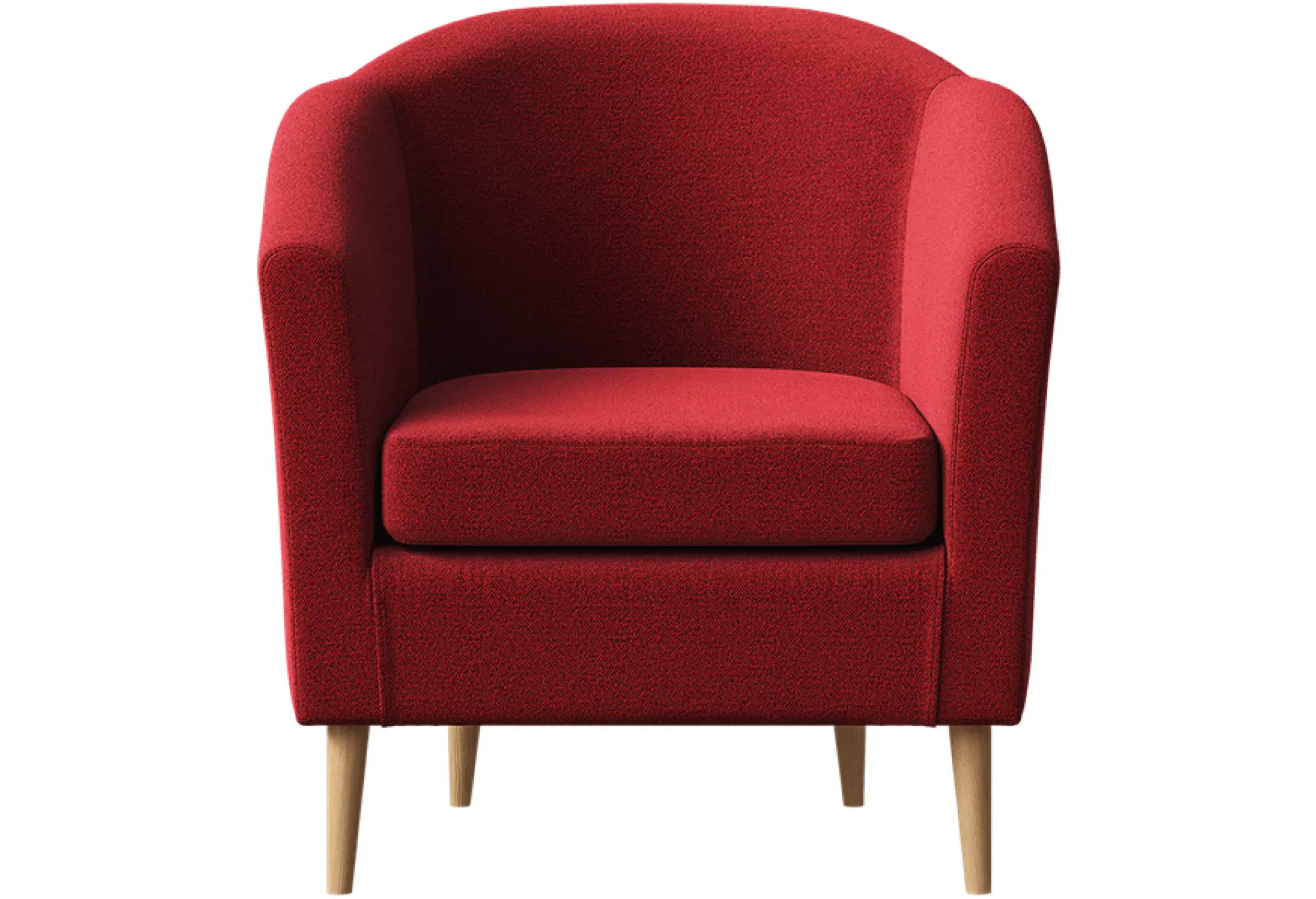 Кресло для отдыха «Тунне» в бордовом цвете создаёт уютный акцент в гостиной, спальне или зоне ожидания. Компактные габариты 780×675×760 мм позволяют удобно разместить его даже в ограниченном пространстве, при этом посадка остаётся визуально и физически комфортной. Обтекаемая спинка в форме ракушки плавно переходит в подлокотники, поддерживая корпус по бокам и формируя удобную зону для отдыха.