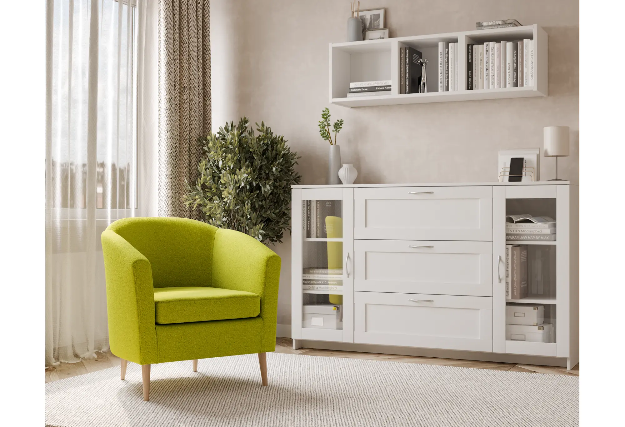 Обивка из рогожки 4-й категории отличается практичностью и износостойкостью, подходит для активной эксплуатации в жилых и общественных помещениях. Желто-зелёный оттенок добавляет пространству акцент и визуально «оживляет» интерьер, не перегружая его. Аккуратные деревянные ножки придают креслу лёгкий, современный вид и упрощают уборку под ним. Габариты 780x675x760 мм позволяют удобно разместить кресло даже в небольших комнатах, в зоне чтения, у окна или в холле. Гарантийный срок 18 месяцев подтверждает продуманность конструкции и качество исполнения.