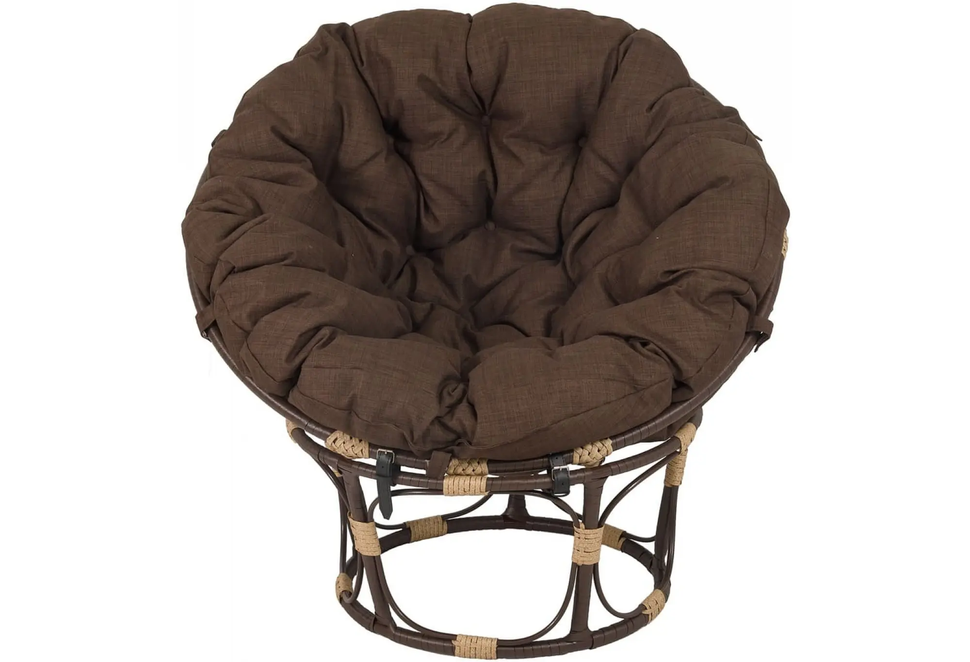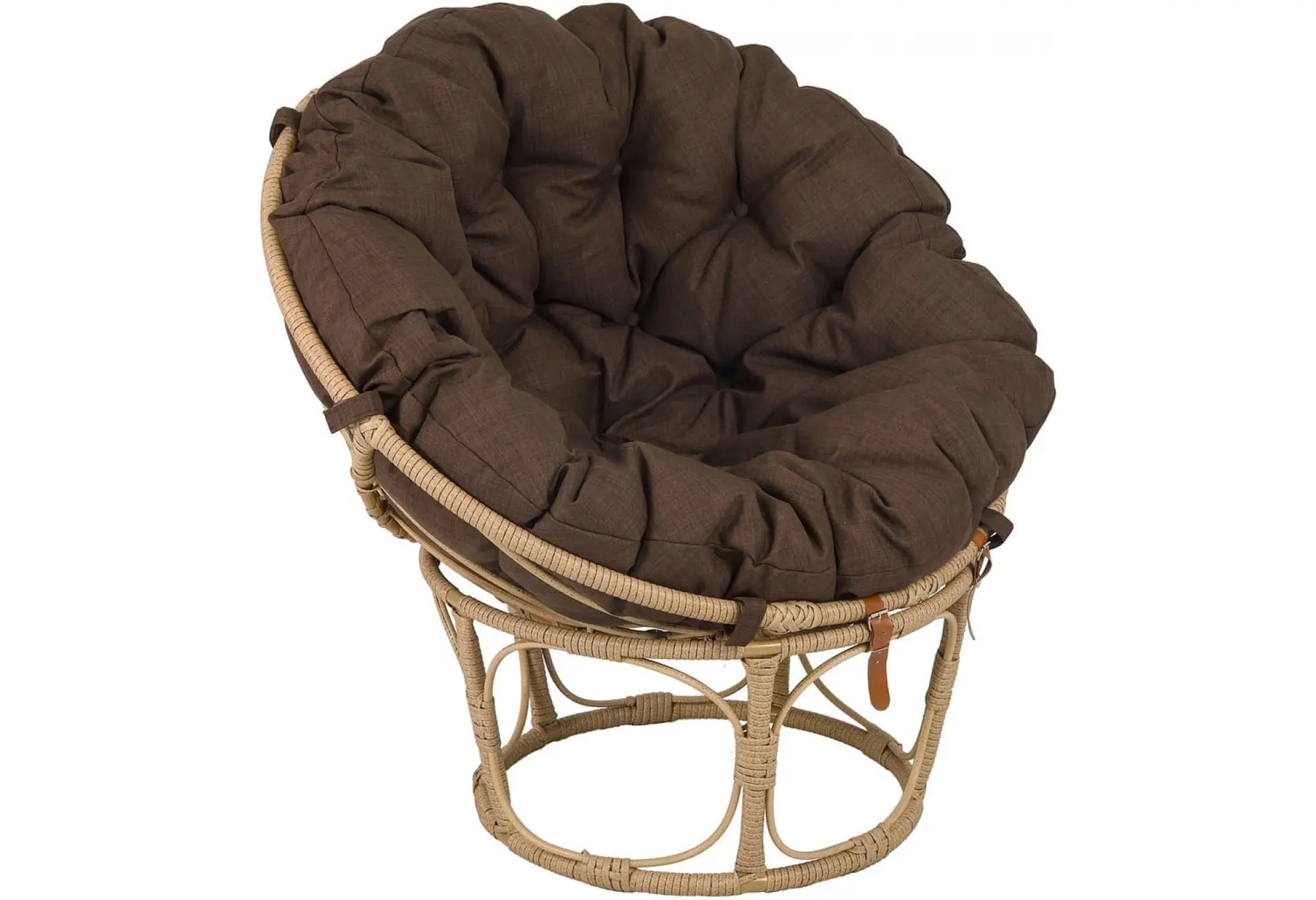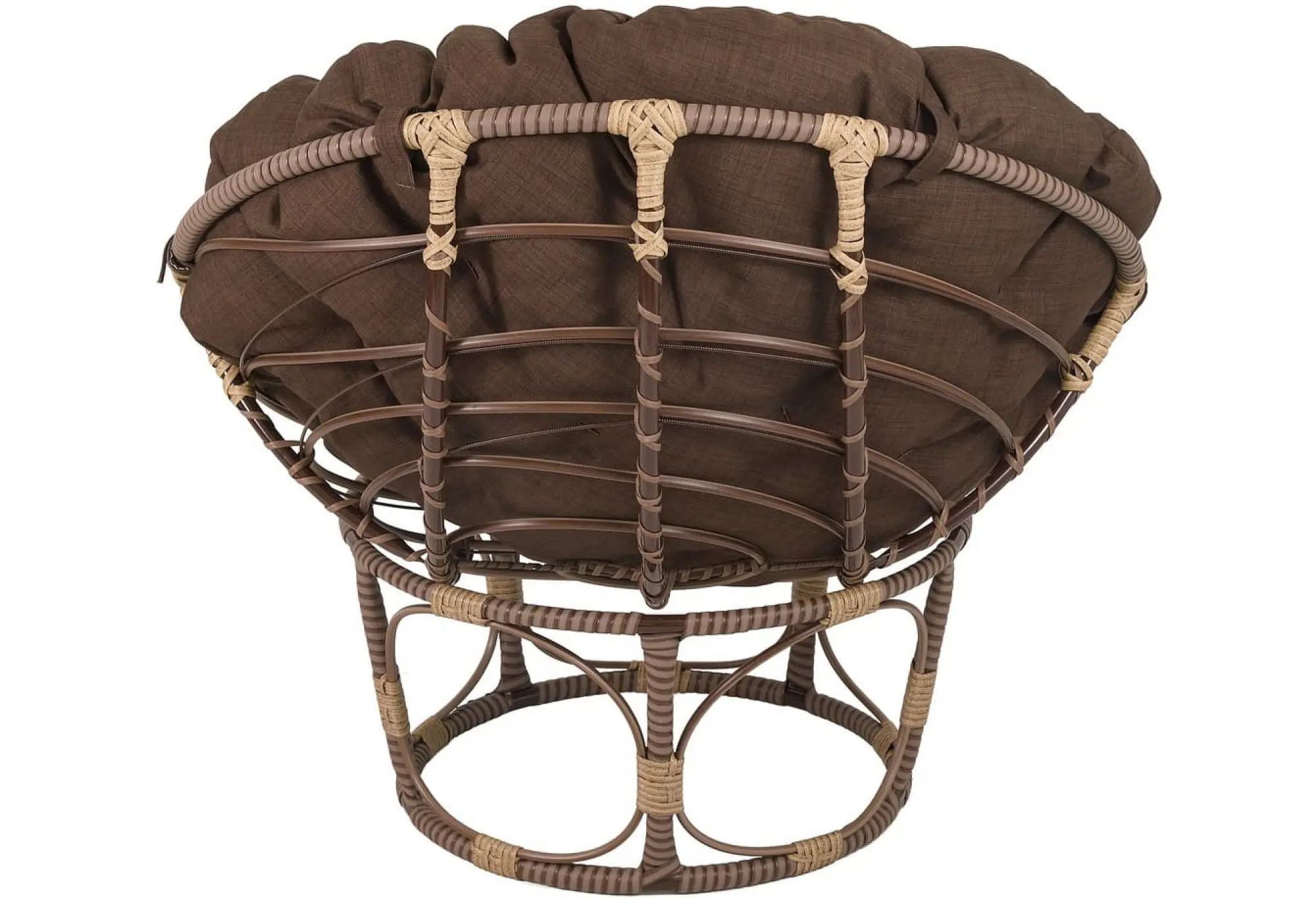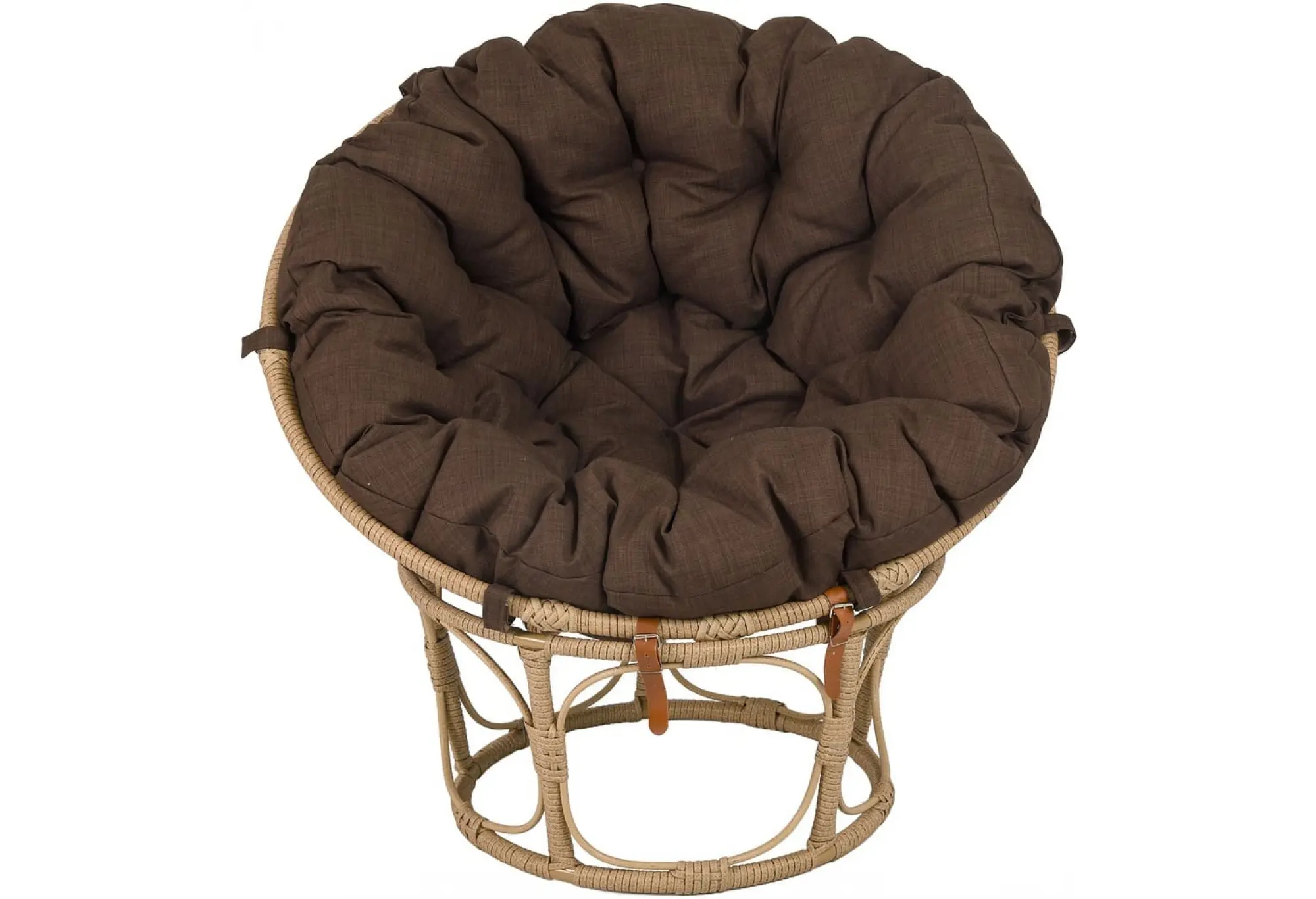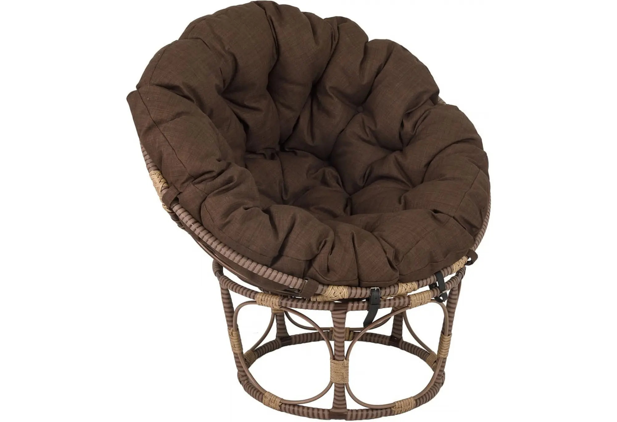 Кресло Папасан, искусственный ротанг, подушка коричневая