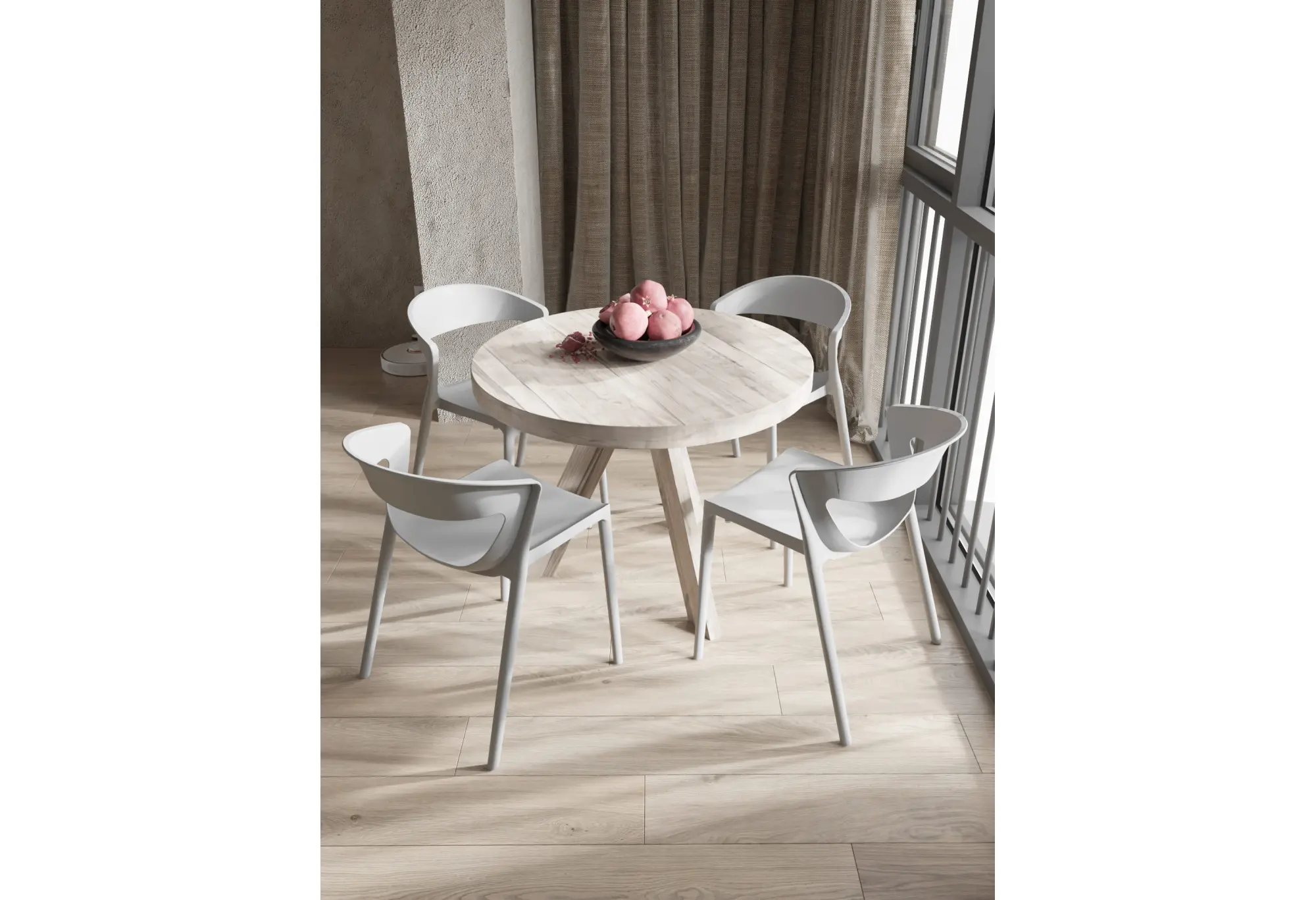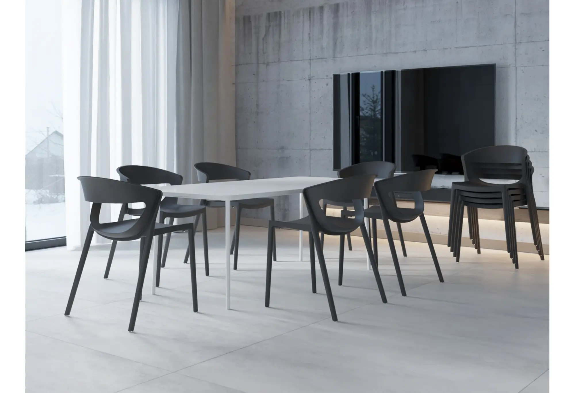 Материал изготовления — армированный полипропилен, обеспечивающий долговечность и устойчивость изделия. Удобство хранения достигается благодаря возможности компактного складывания друг на друга. Для защиты полов предусмотрены специальные резиновые накладки на концах ножек.